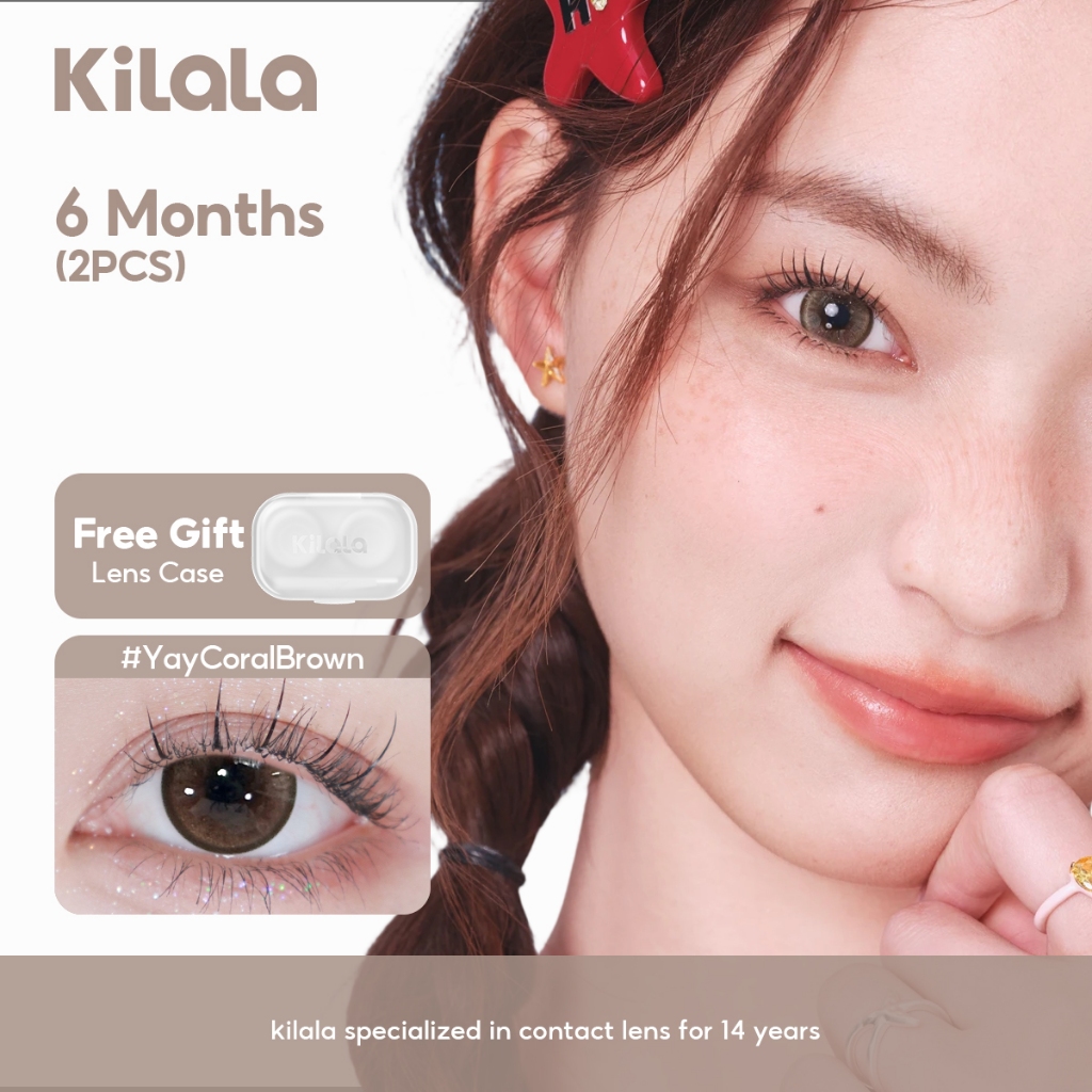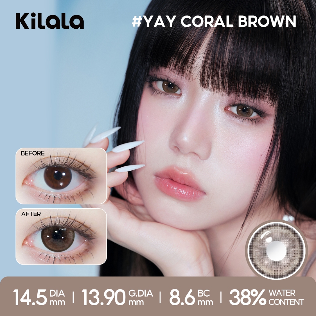 Kilala Colored Contact Lens Yay Coral Brown 38% 14.5mm Colorful Eyes Lenses with Power (0-7)2Pcs