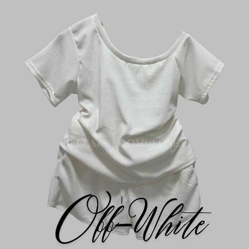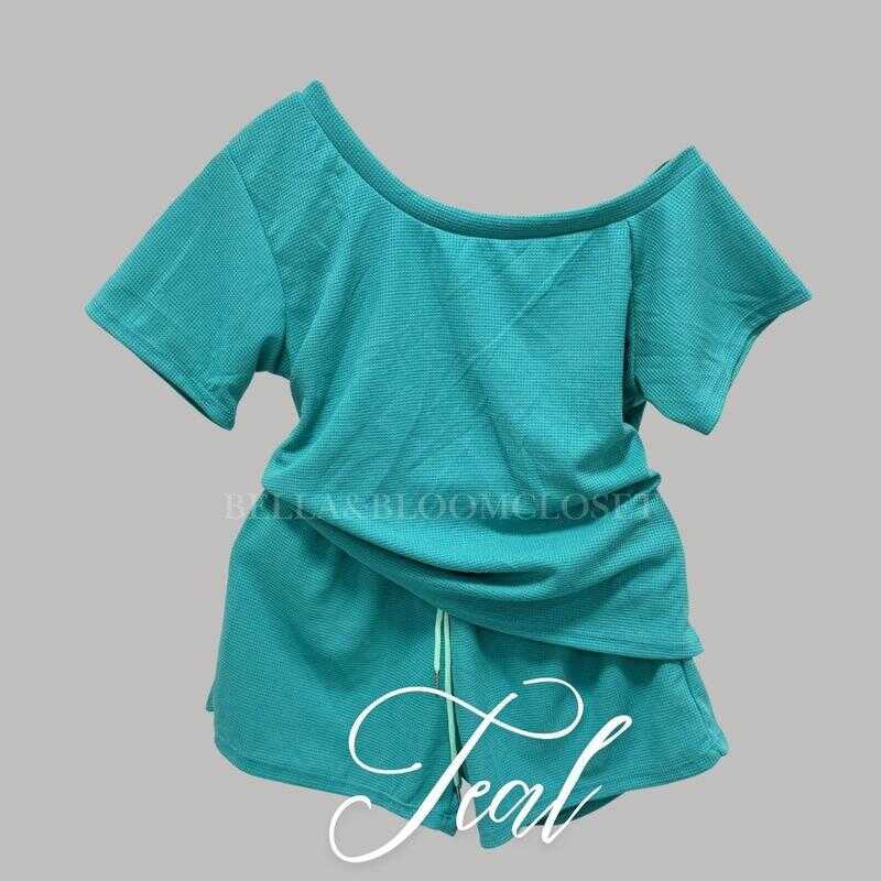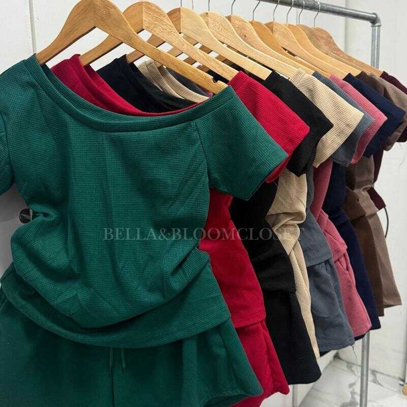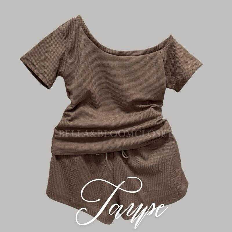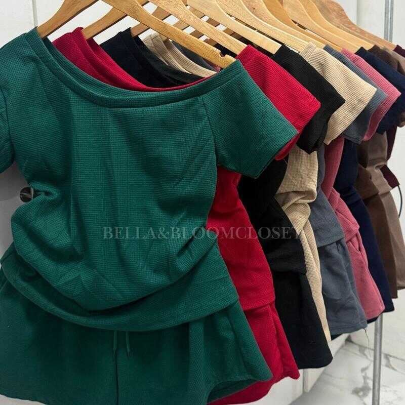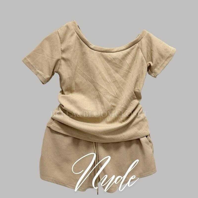 COD Sabrina Drop Shoulder Top Terno Shorts Set With 2 Side Pockets In Waffle Cotton Fabric Free