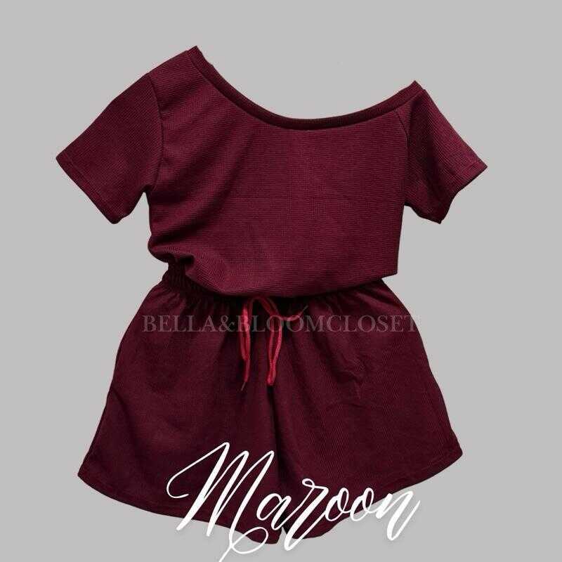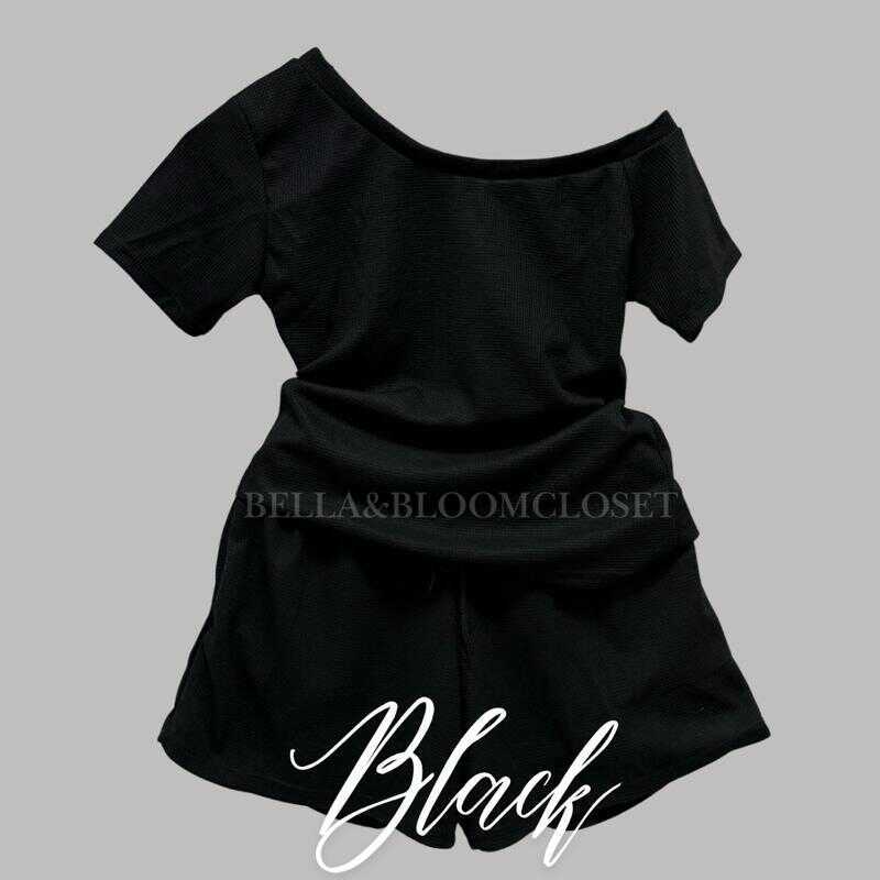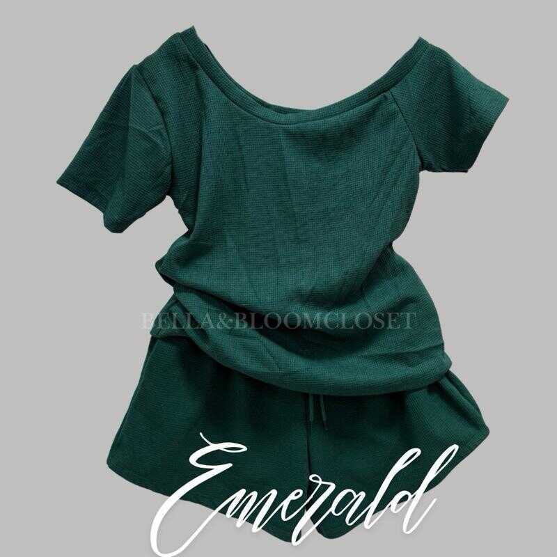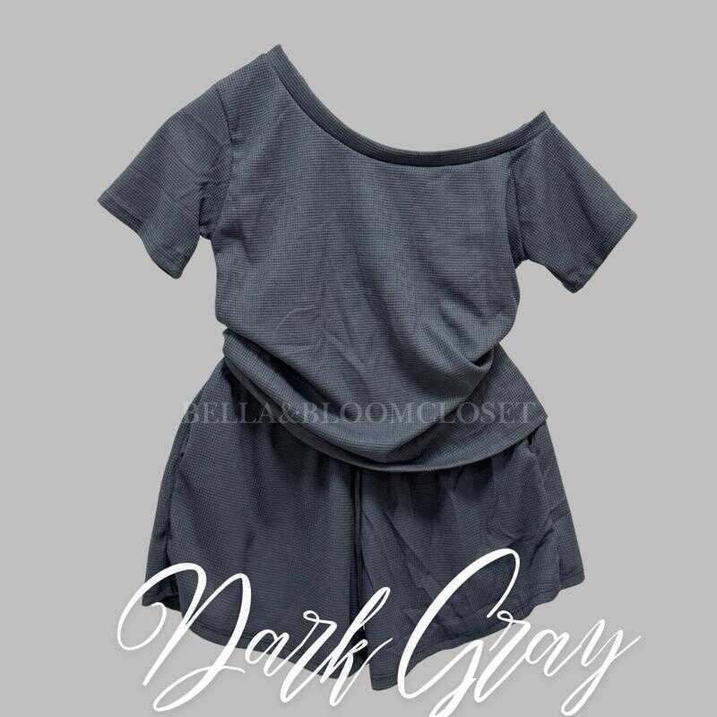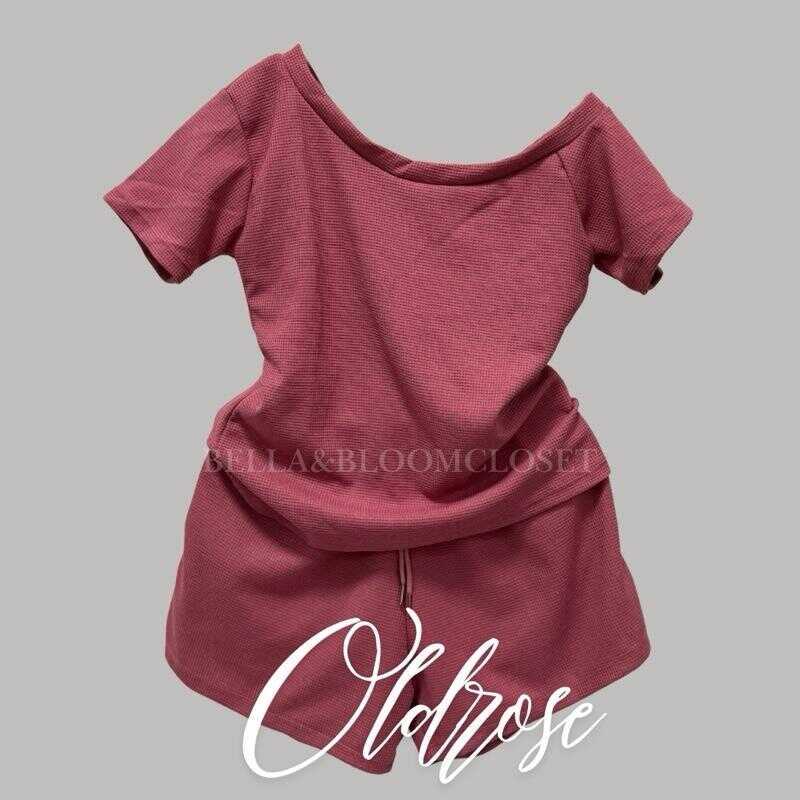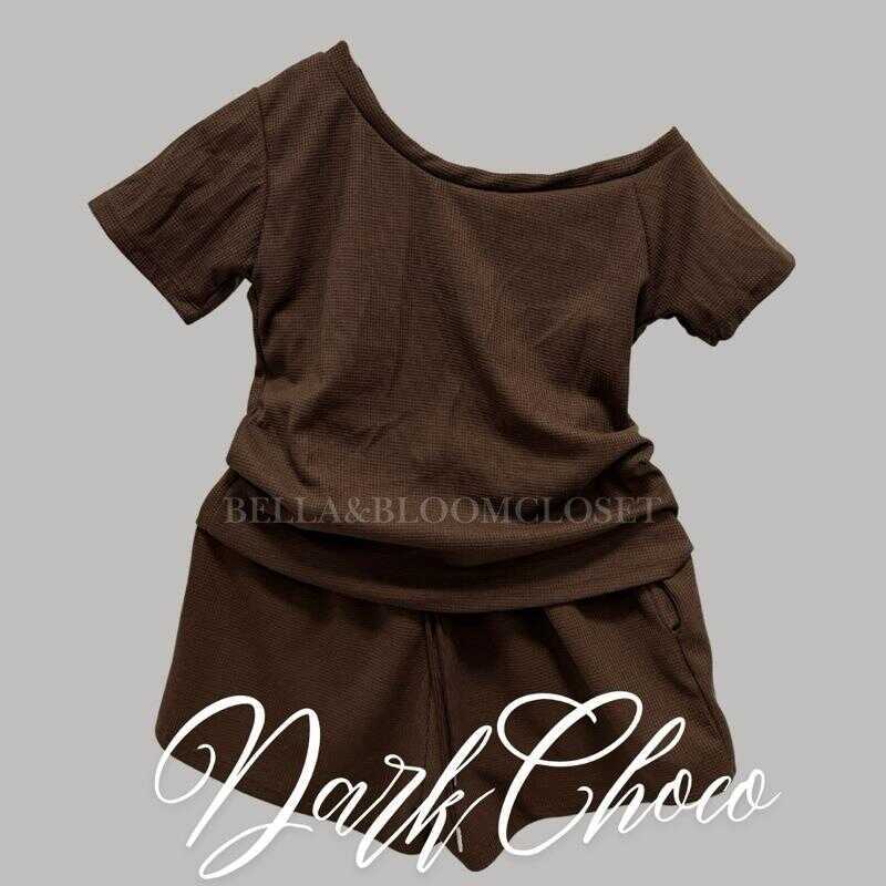COD Sabrina Drop Shoulder Top Terno Shorts Set With 2 Side Pockets In Waffle Cotton Fabric Free