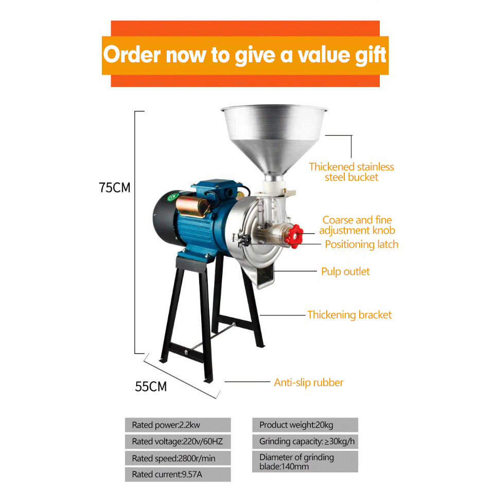 Wet and Dry Grinder 3HP Grinding Peanut Butter Heavy Duty Commercial Grinder Pure Copper Grinder