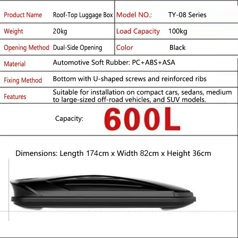 Universal Car Roof-Top Luggage Box Auto Top Bag Rack Cargo Carrier Travel Storage Waterproof For SUV