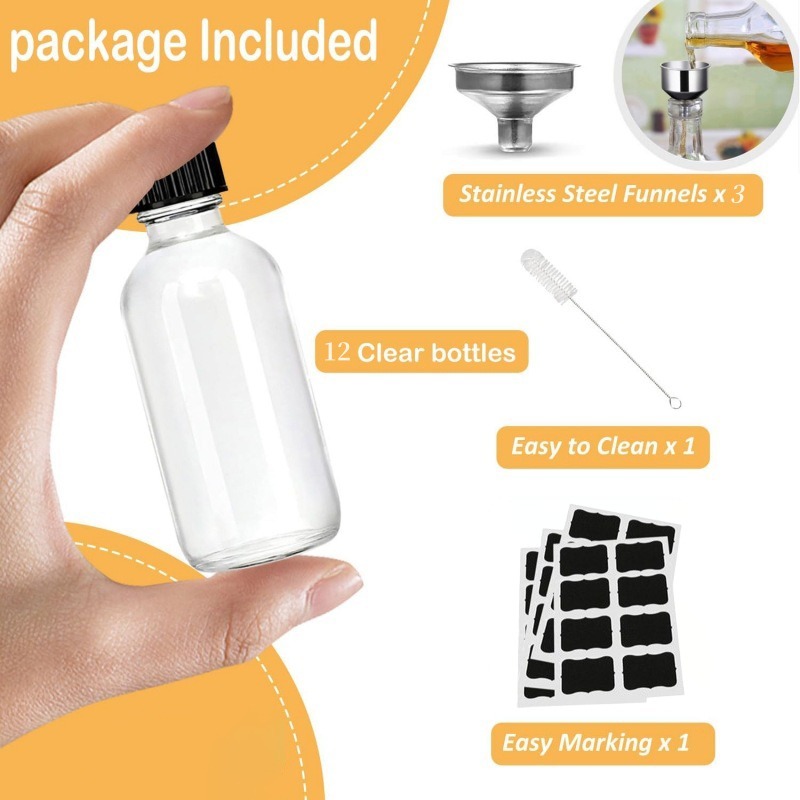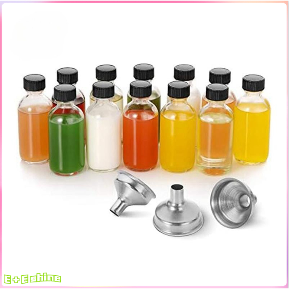 12Pcs Glass Bottles with Lids 60ml Clear Bottle with 3 Funnels 2 Oz Clear Juice Ginger Shot