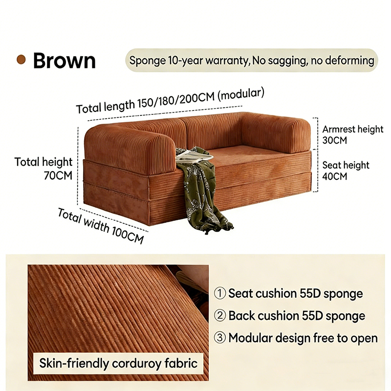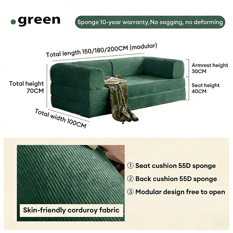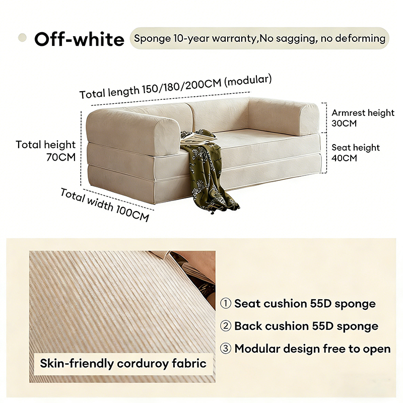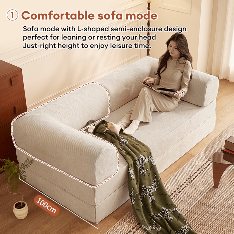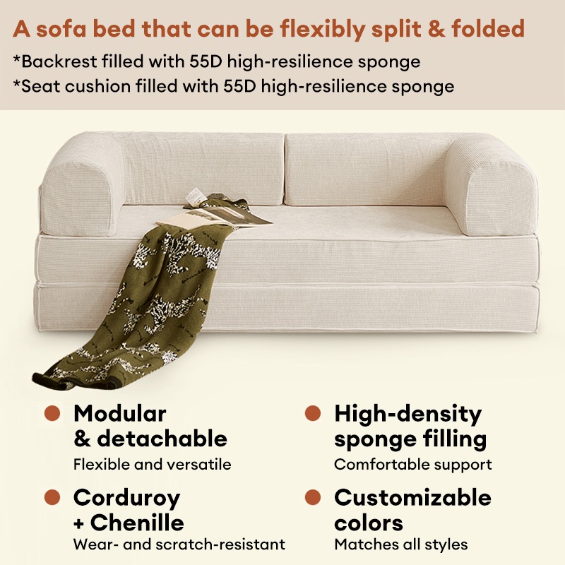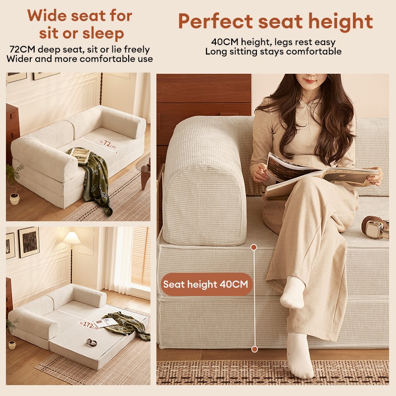DreamHug 4-In-1 Foldable Memory Foam Sofa Bed With L-Shaped Armrests Washable No Sagging Over Time
