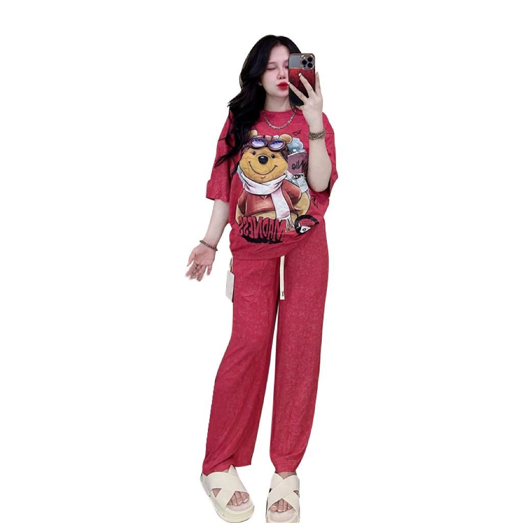 Plus Size Terno Women Outfit Casual Tie Dye Set Women's Short Sleeve Tshirt + Wide Leg Pants
