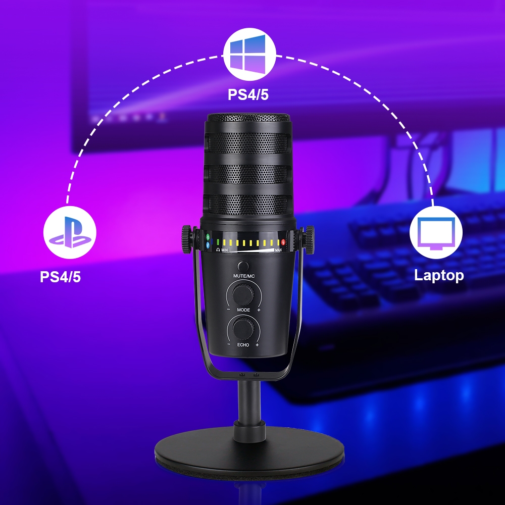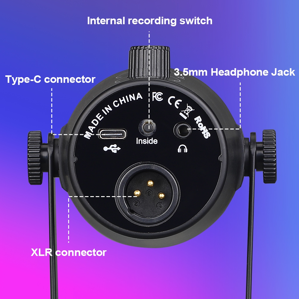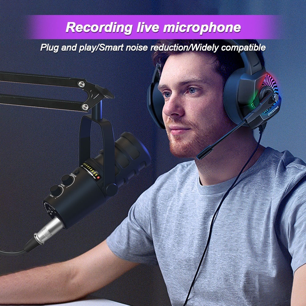 Haomuren XLR/USB podcast microphone dynamic metal microphone with software for game live recording