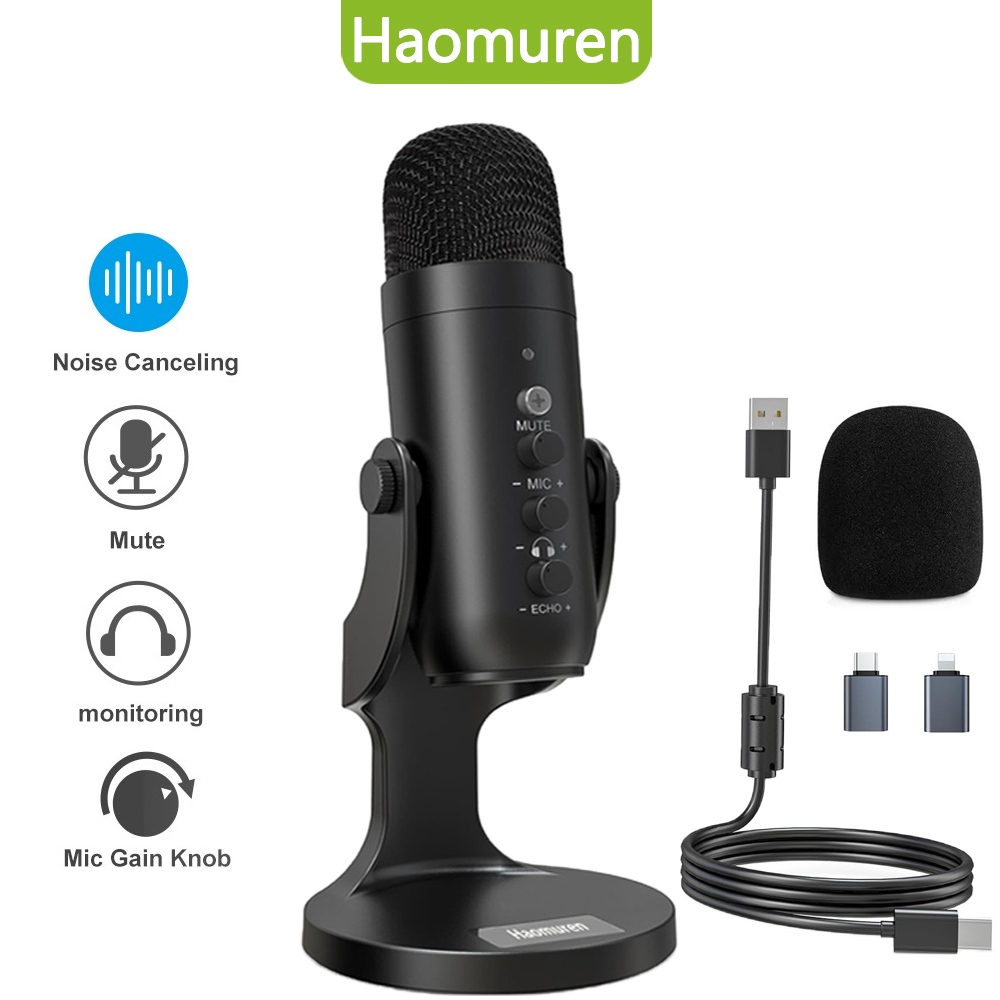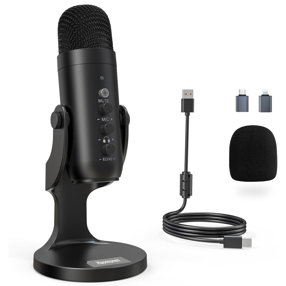 Haomuren USB Podcast Microphone for PC Mac Recording Dynamic Microphone Gaming Mic Streaming Mic