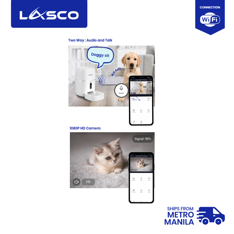 Lasco WIFI Smart Pet Feeder 6L, with 2 MP Video Camera Automatic Food Dispenser for Cat Dogs