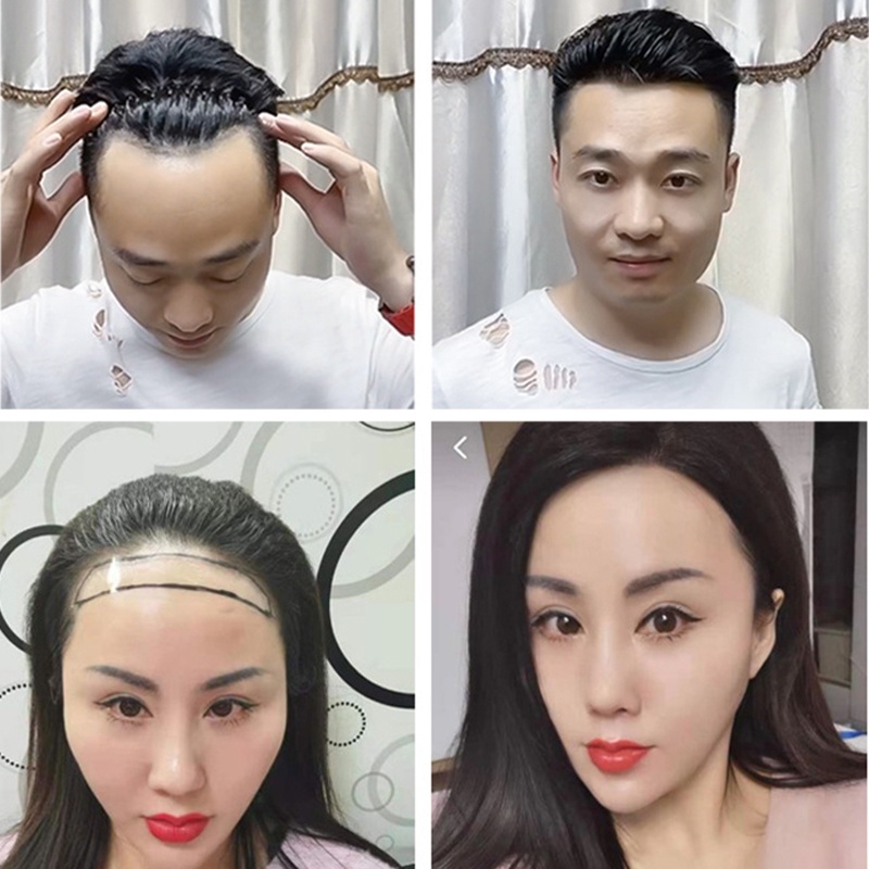 【IN STOCK】Hair Toupee for Men Bangs Hair Wig Piece Trimmable Adhesive Hairpiece Natural Hairline Replacement System for Women