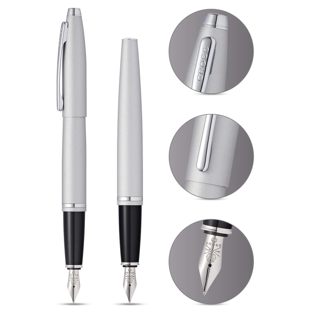 【 CROSS 】 Cross Karei All-Over Satin Chrome Fountain Pen with Stainless Steel Nib ( M-Shaped ) [Direct from Japan]