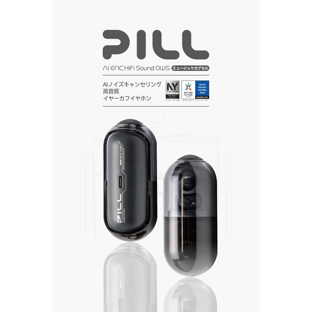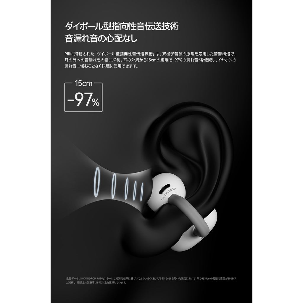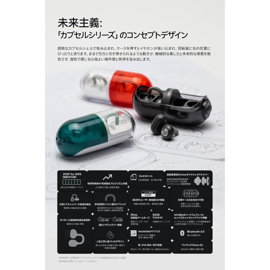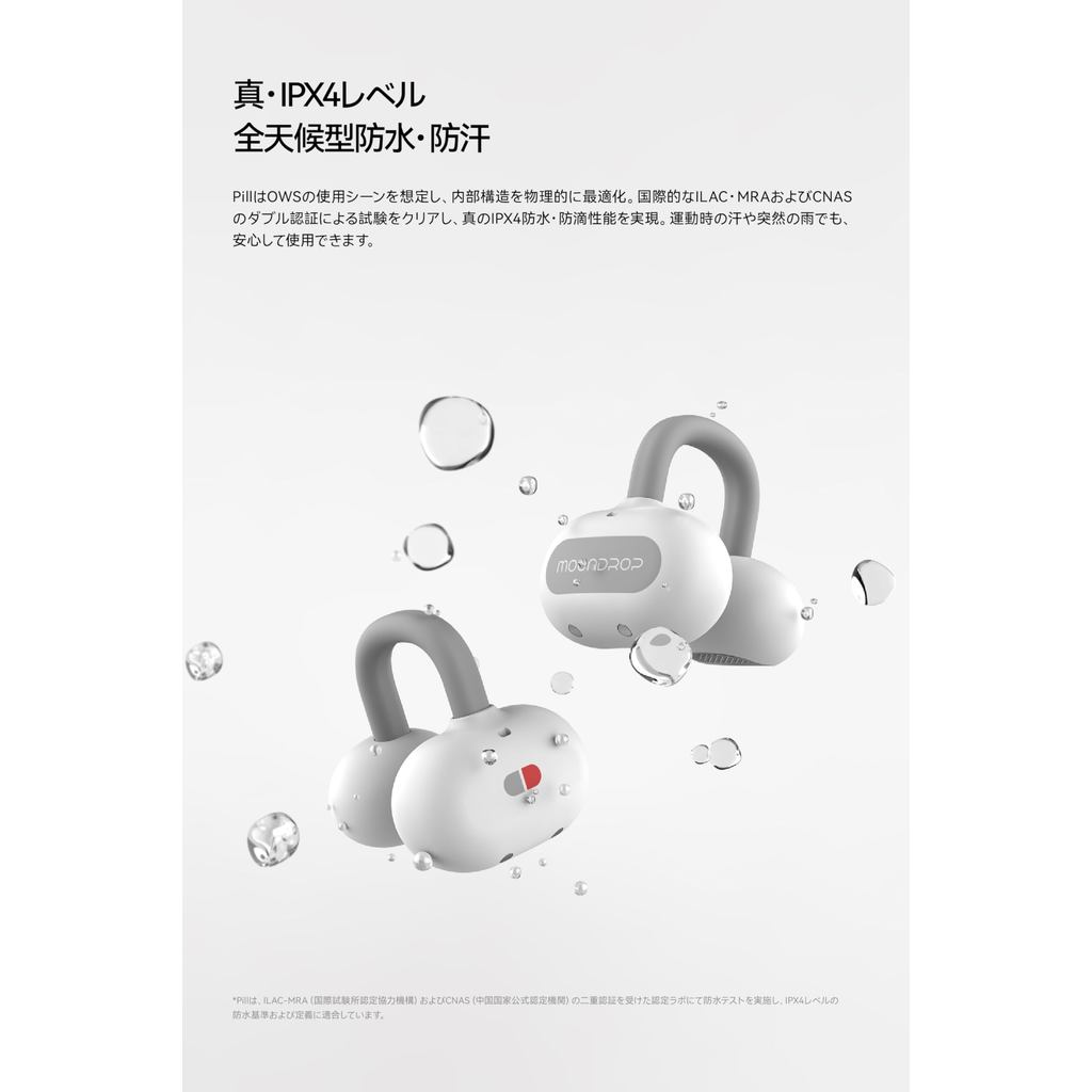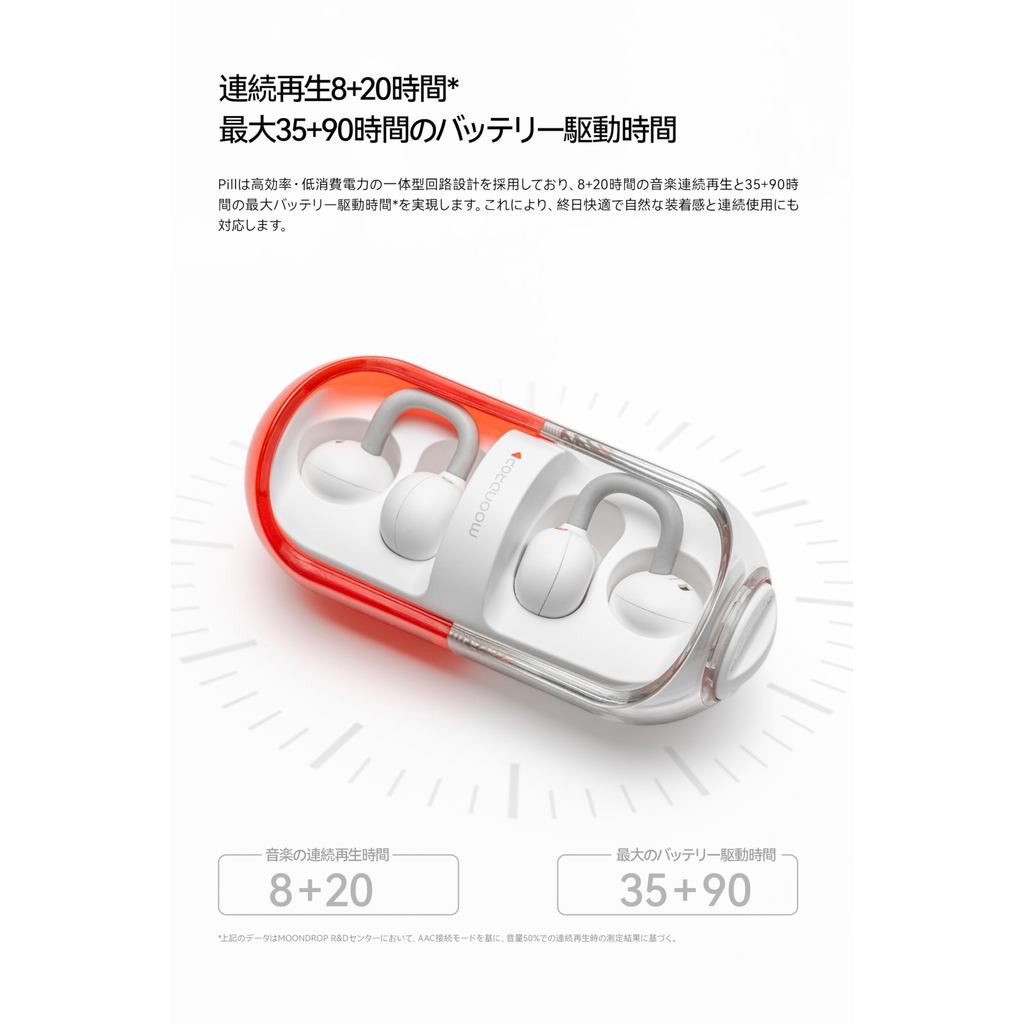 【 Moondrop 】 Pill Open-Ear Wireless Earbuds with Ear Cuffs Bluetooth 6.0 Open-Ear Ear Clip-On Design IPX4 Waterproof / Up to 28 Hours of Playback / AI Noise Cancelling / 13mm Circular Low-Distortion Dynamic Driver / Titanium Alloy Frame Support [Direc
