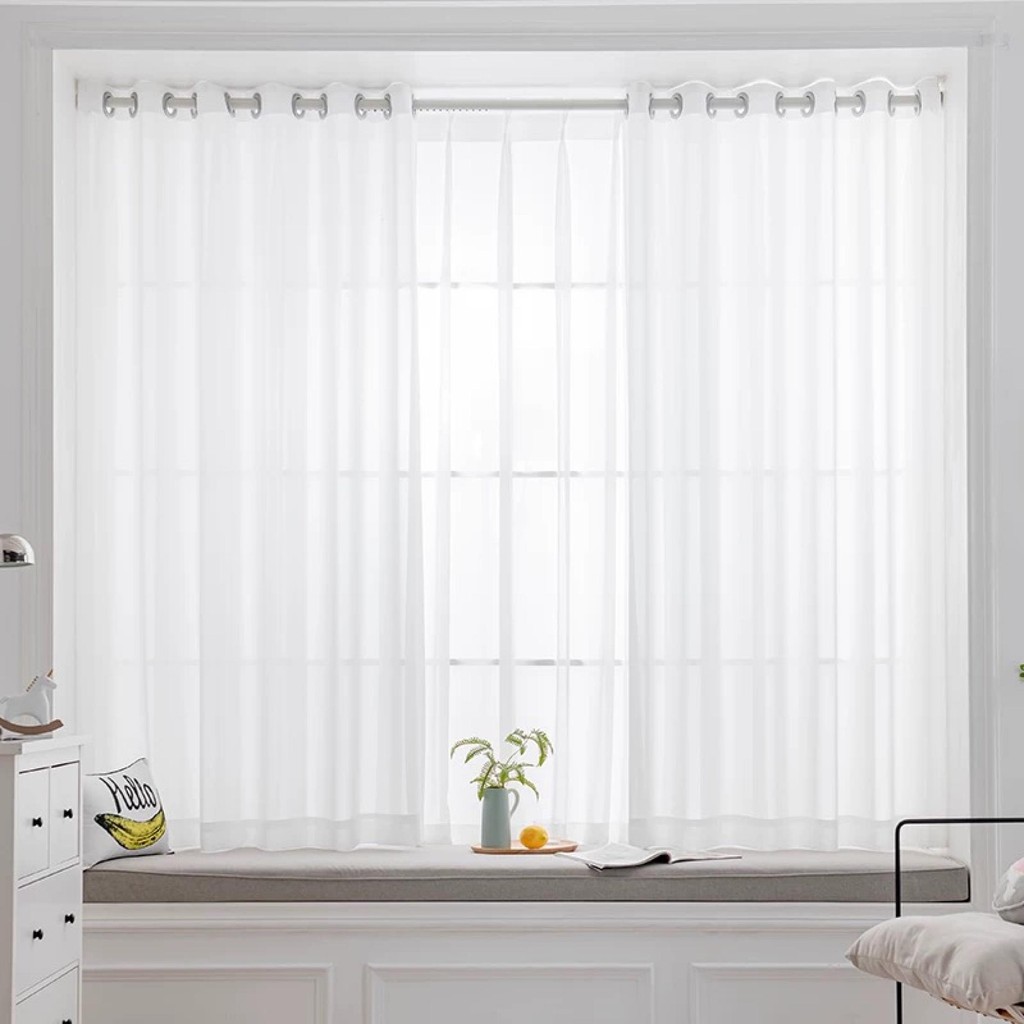 【BUY 1 TAKE 1】Korean Sheer Curtain White Lace Short Curtain for Windows Solid Color Sheer Curtain