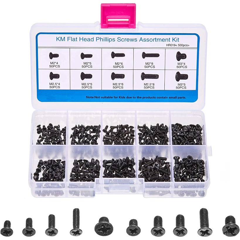 500pcs Laptop Computer Screws Kit M2 M2.5 M3 Cross Grooved Flat Head Computer Replacement Screws