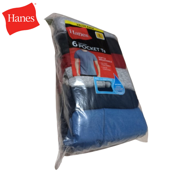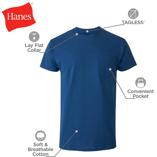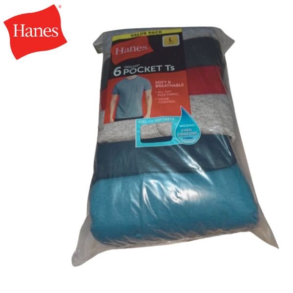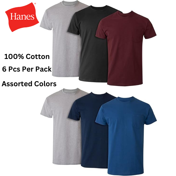 Hanes Men's Pocket Undershirt Pack, Cotton Crew Neck T-Shirt, Moisture Wicking Tee, Assorted 6 PPack