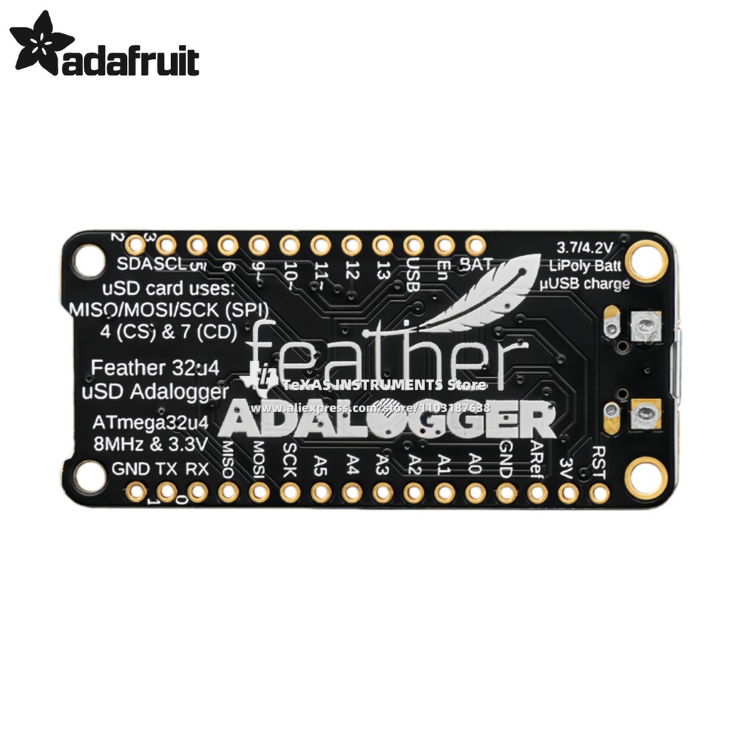 【TI Official】 Adafruit Feather 32u4 Adalogger (Product ID: 2795)