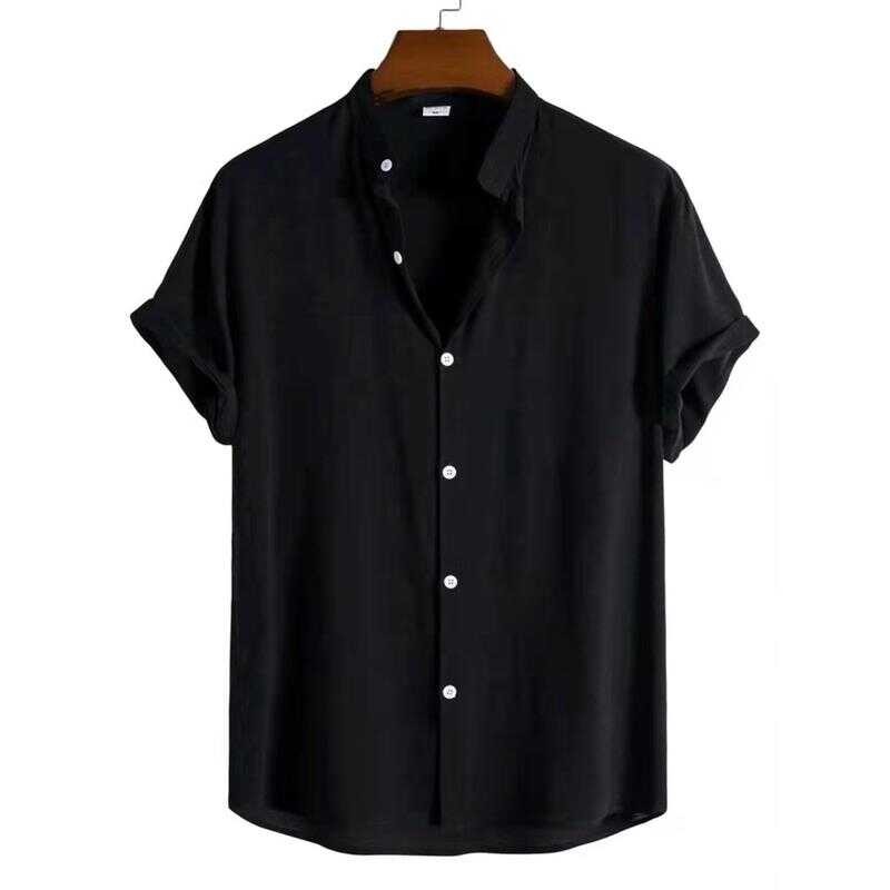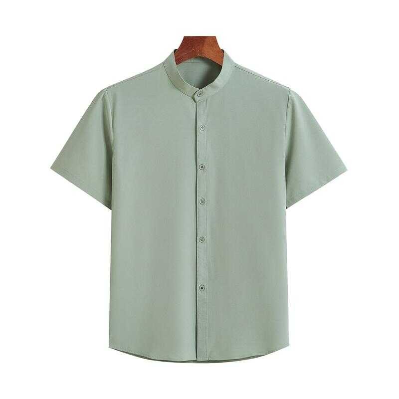 TOPSHION 2022# Chinese Collar Polo For Men Short Sleeves Full Buttons Cotton 9 Colors Size M To XXL