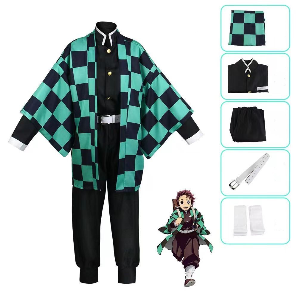 Anime Demon Slayer Kimetsu No Yaiba Cosplay Costume & Accessories Kamado Kimono Uniform Halloween Clothes