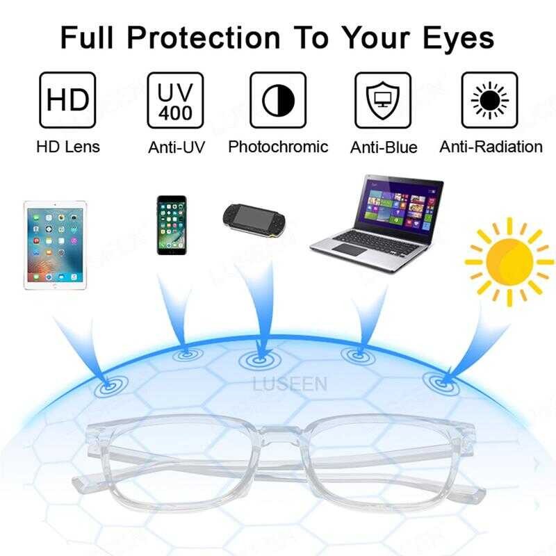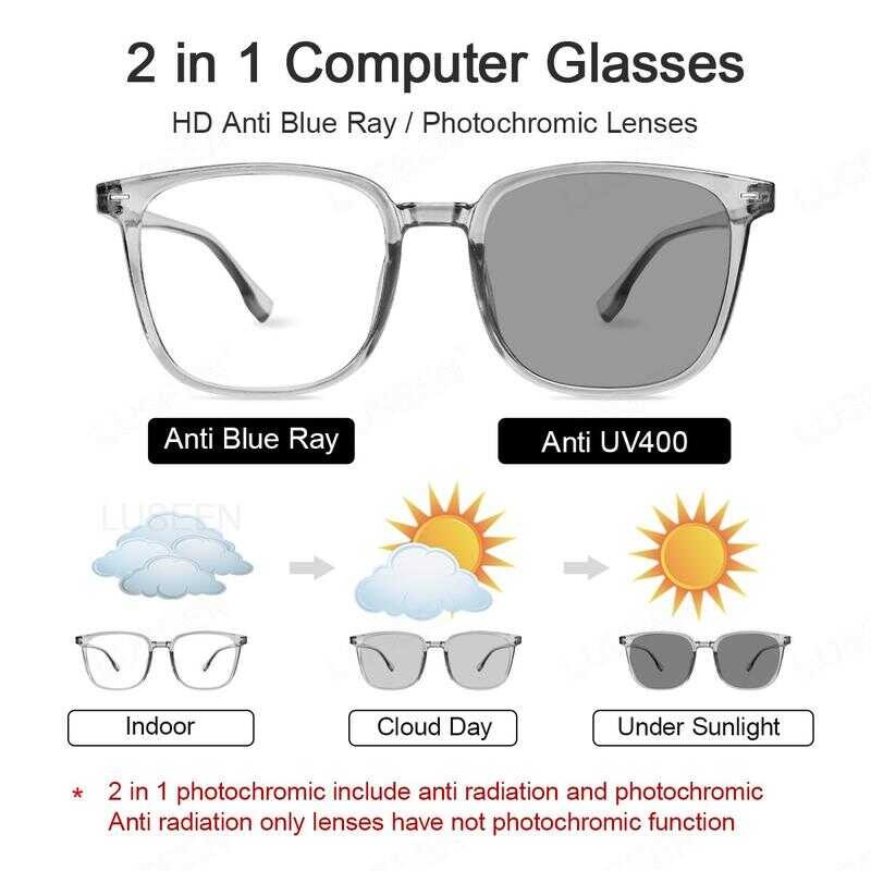 LUSEEN Ag2279 Black Frame Glasses Photochromic And Anti Radiation Square Full Rim Y2k Retro Eyeglass