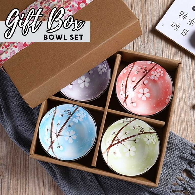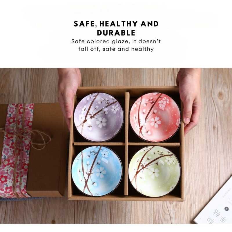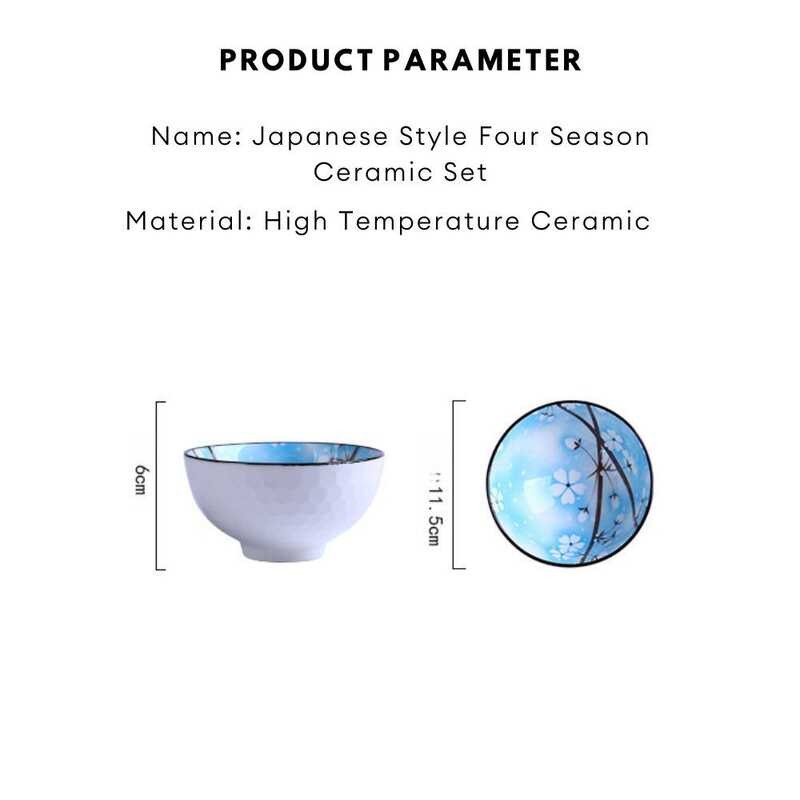 LOCAUPIN Gift Ideas Japanese Style Ceramic Bowl Four Season Design Set Tableware Round 4Pcs