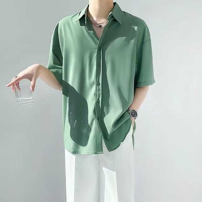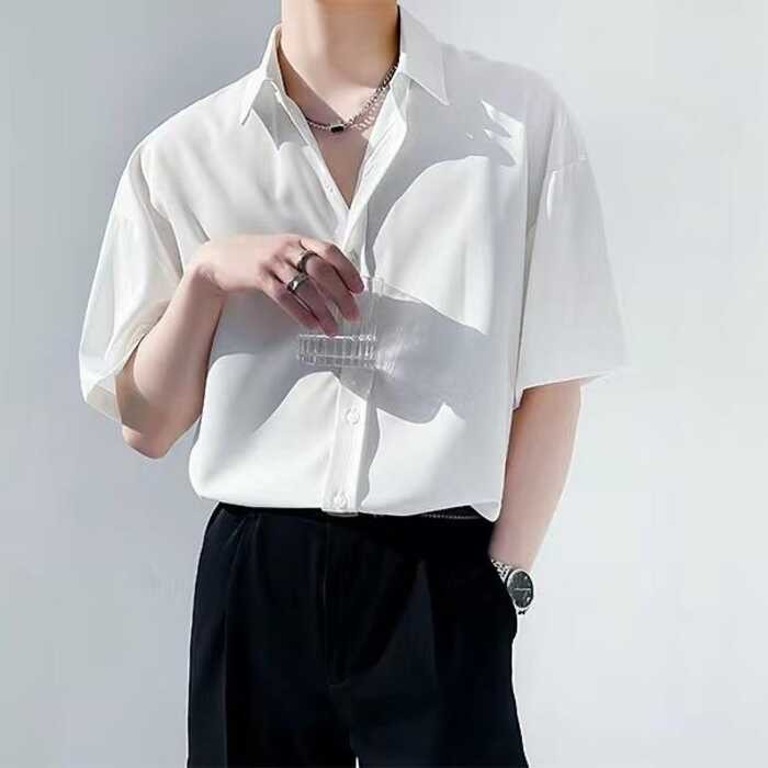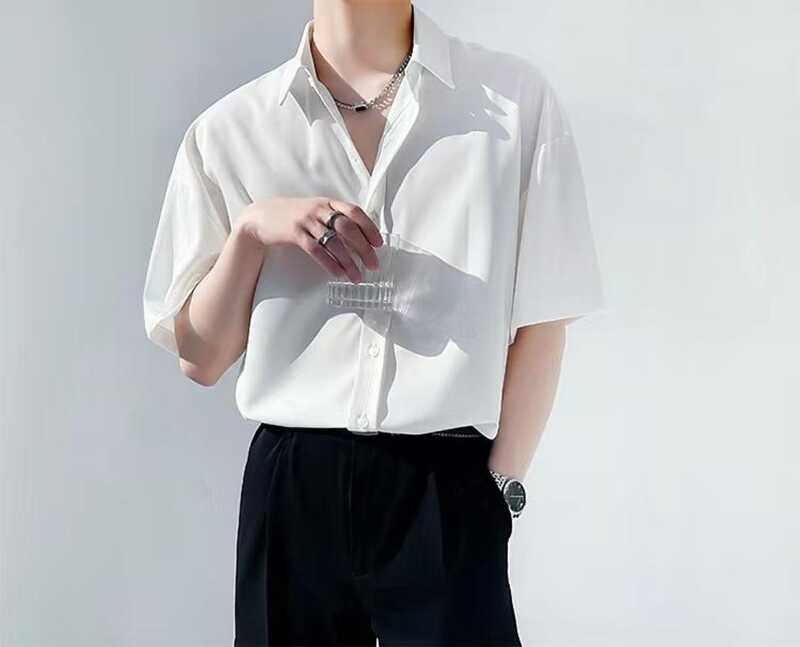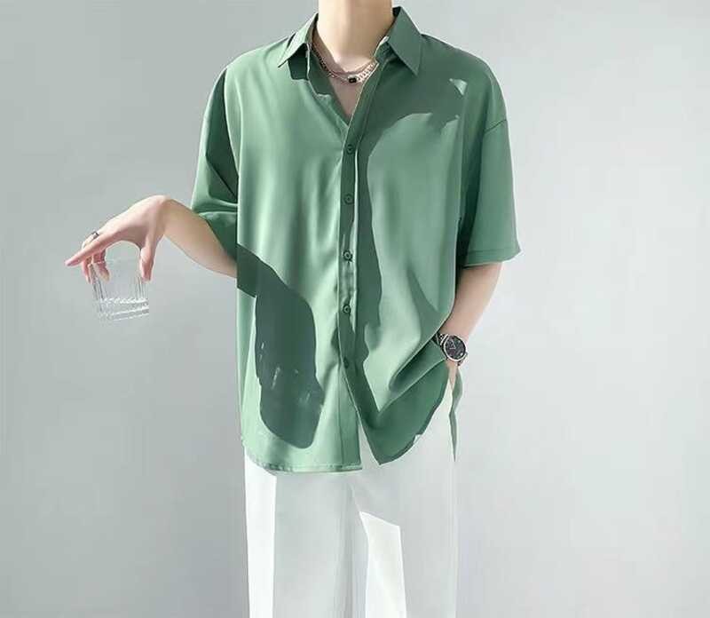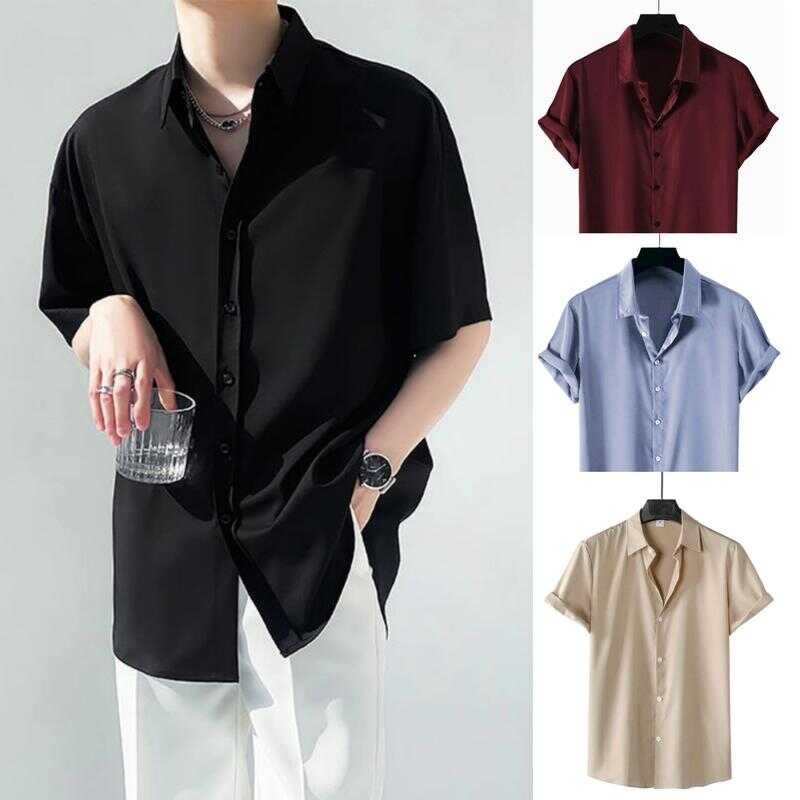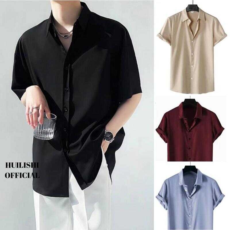HUILISHI OFFICIAL NEW TREND KOREAN STYLE LOOSE FIT OVERSIZE SHIRT COTTON SILK FULL BUTTON POLO