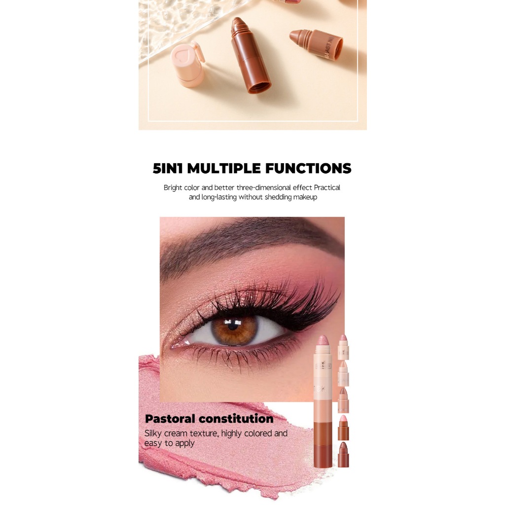 NEW 5-in-1 Color Eyeshadow Stick, Gradient Shade, One-Swipe Application, Smudge-Proof, Waterproof and Sweat-Proof
