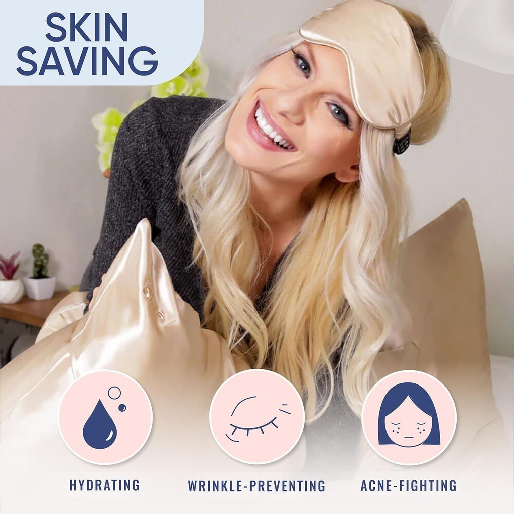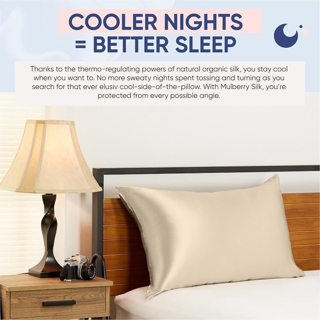 Blissy 100% Pure Mulberry Silk Pillowcase with Hidden Zipper (Queen, Champagne)