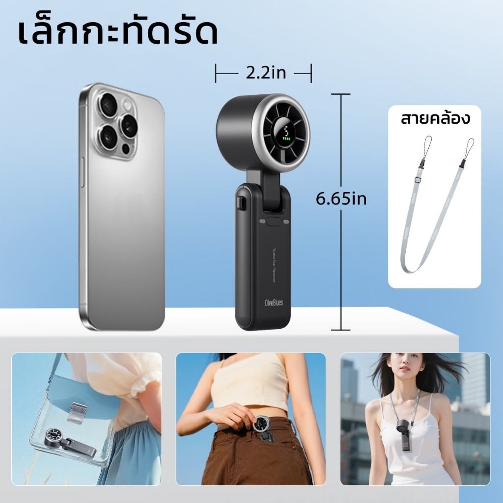 DiveBlues 2025 high -speed handheld fan Turbo jet digital screen 4000 mAh battery rechargeable turbo fan N607D-10