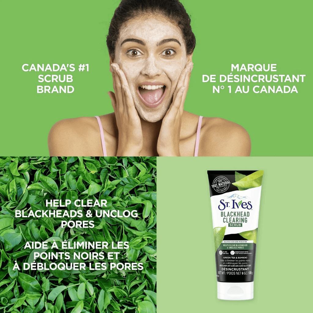 🇨🇦 St. Ives Blackhead Clearing Scrub Green Tea & Bamboo Salicylic Acid Acne Medication 170g