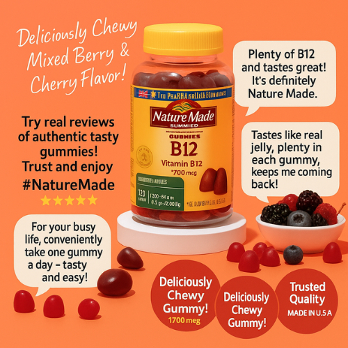 Nature Made B12 Gummies 1200mcg | 120 Count | Energy & Nerve Support | Cherry Flavor | Exp 2026.07.15 | Made in USA