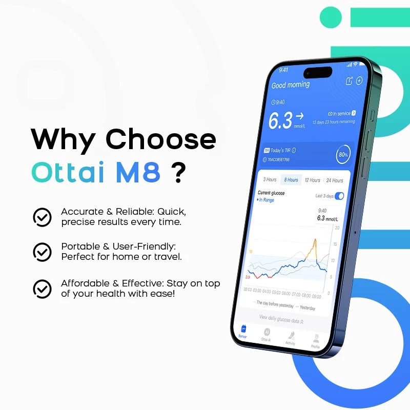 Ottai 1 Full Sets CGM Health Accessories Diabetes Glucose Sensor No Finger Pricking