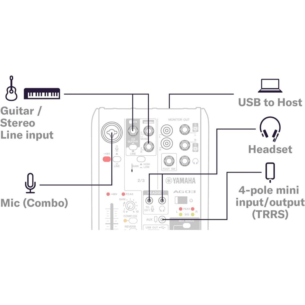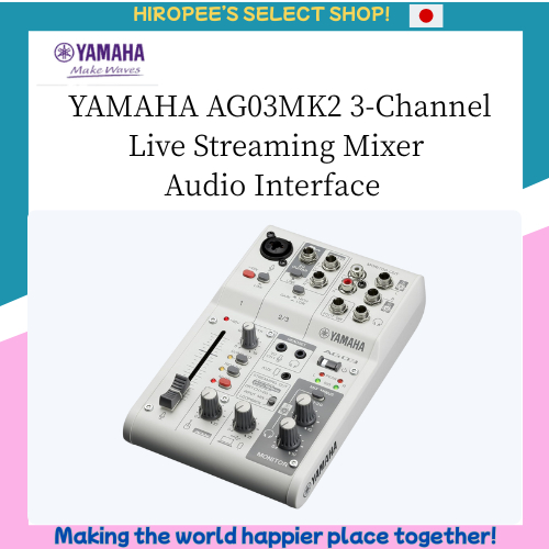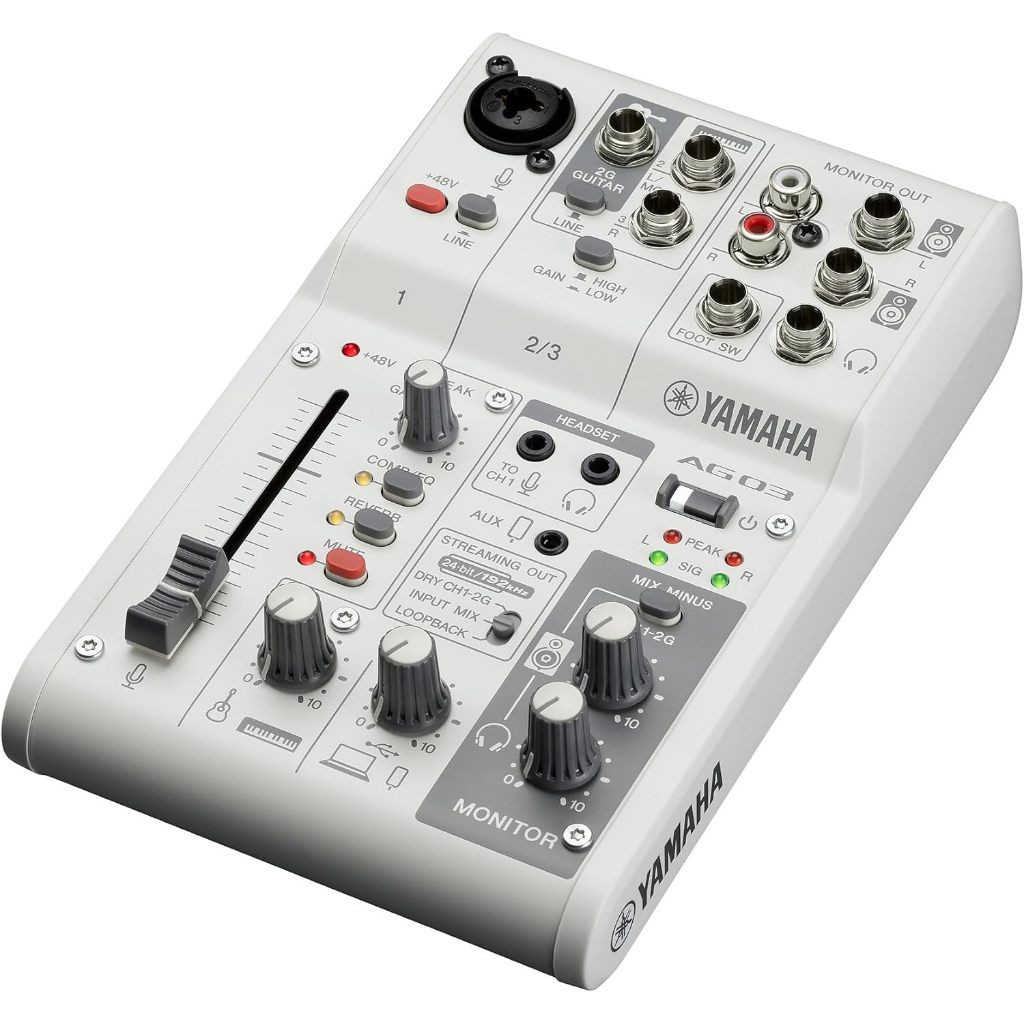 YAMAHA AG03MK2 3-Channel Live Streaming Mixer Audio Interface White with 3m Mic Cable