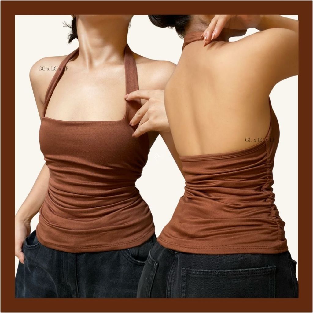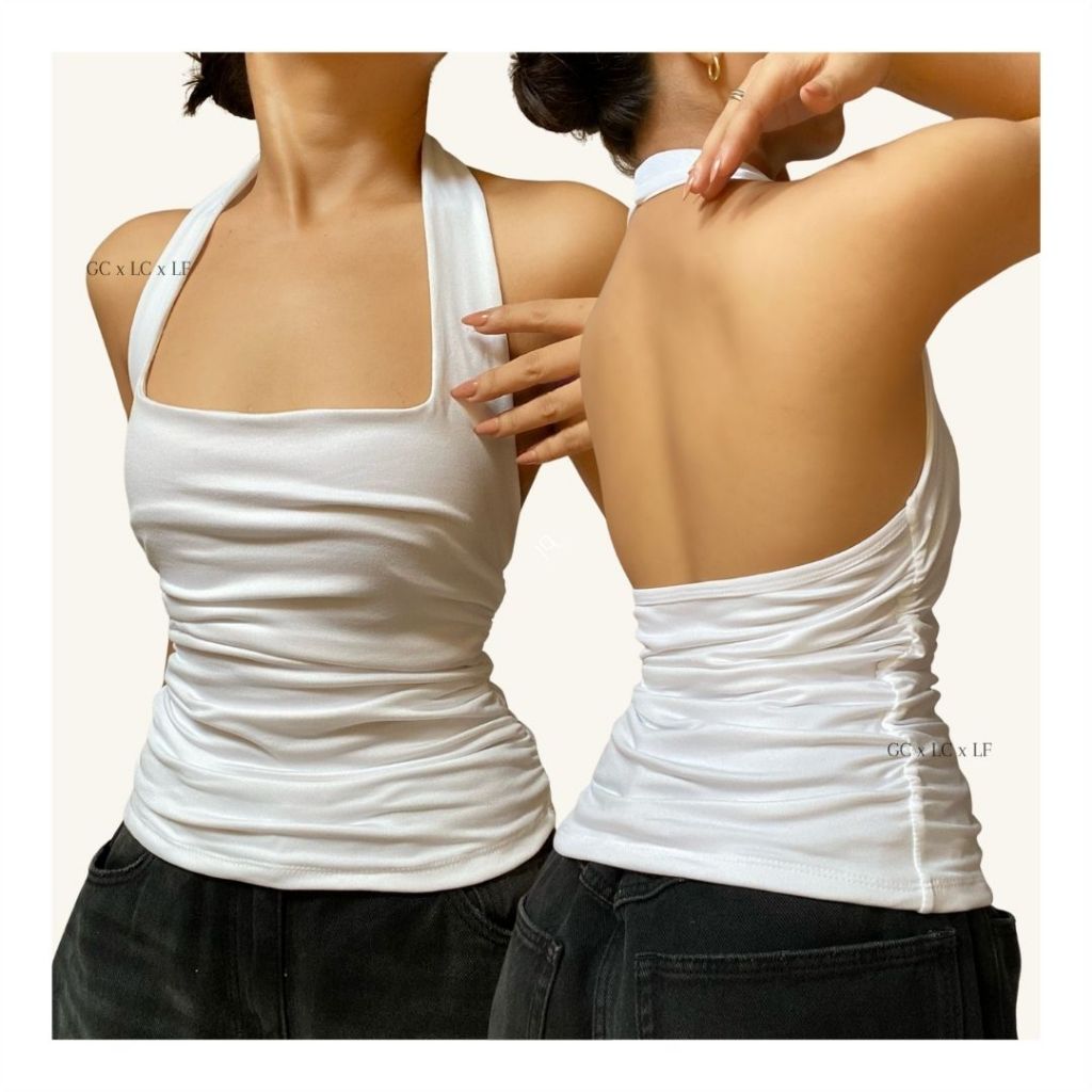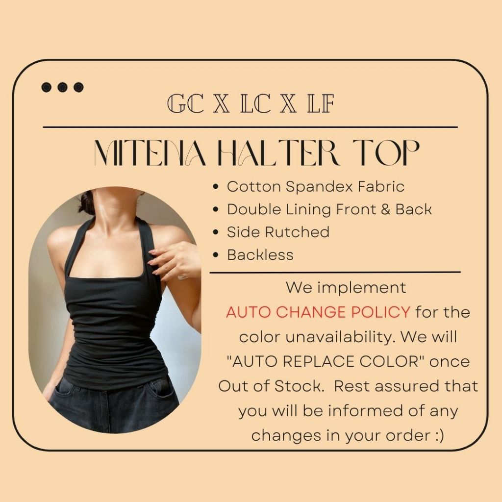 MITENA Halter Tank Top | Double Lining Front & Back | Square Neck Side Rutched | Cotton Spandex