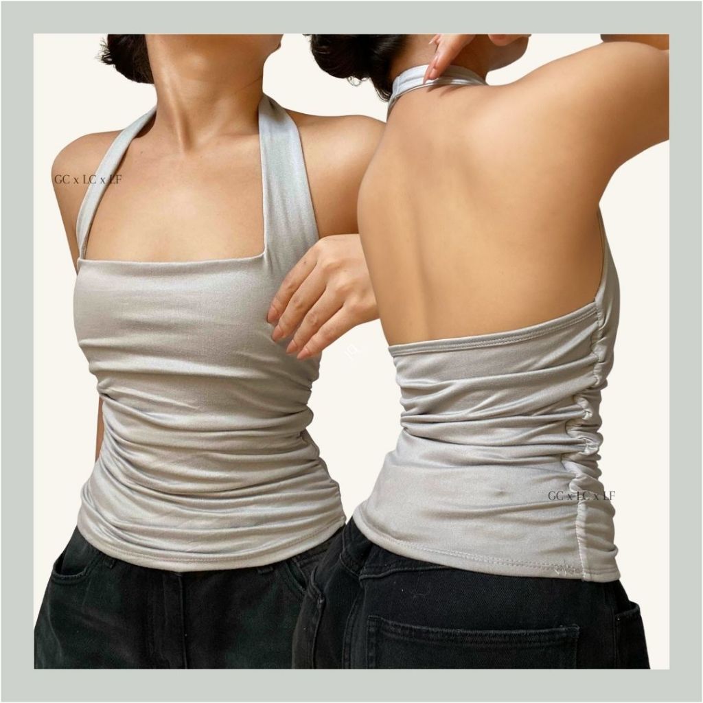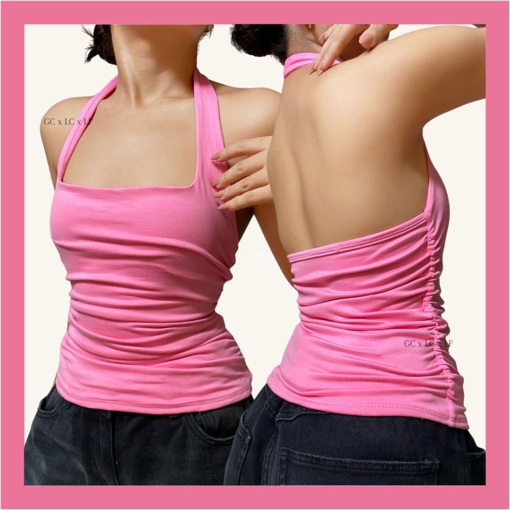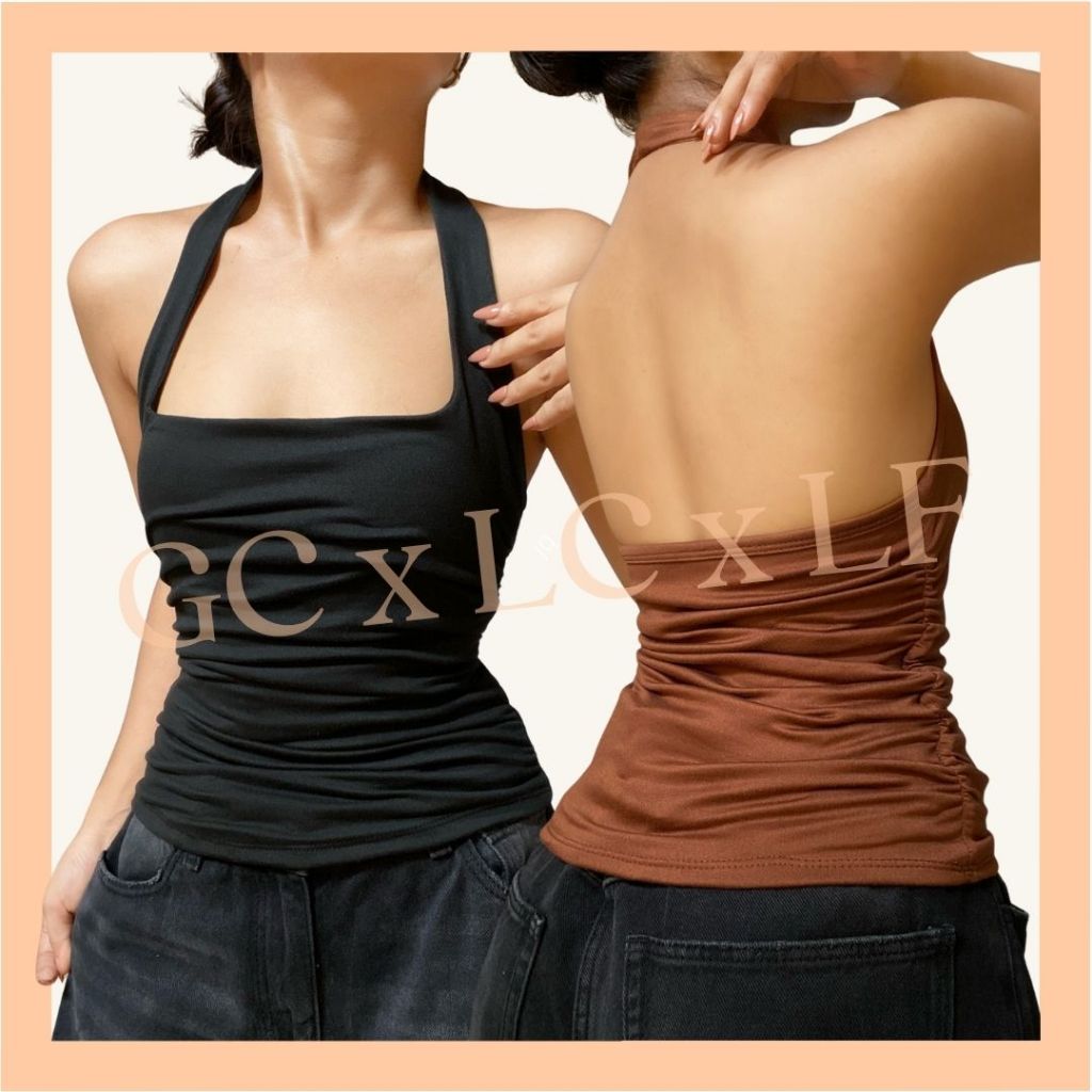 MITENA Halter Tank Top | Double Lining Front & Back | Square Neck Side Rutched | Cotton Spandex