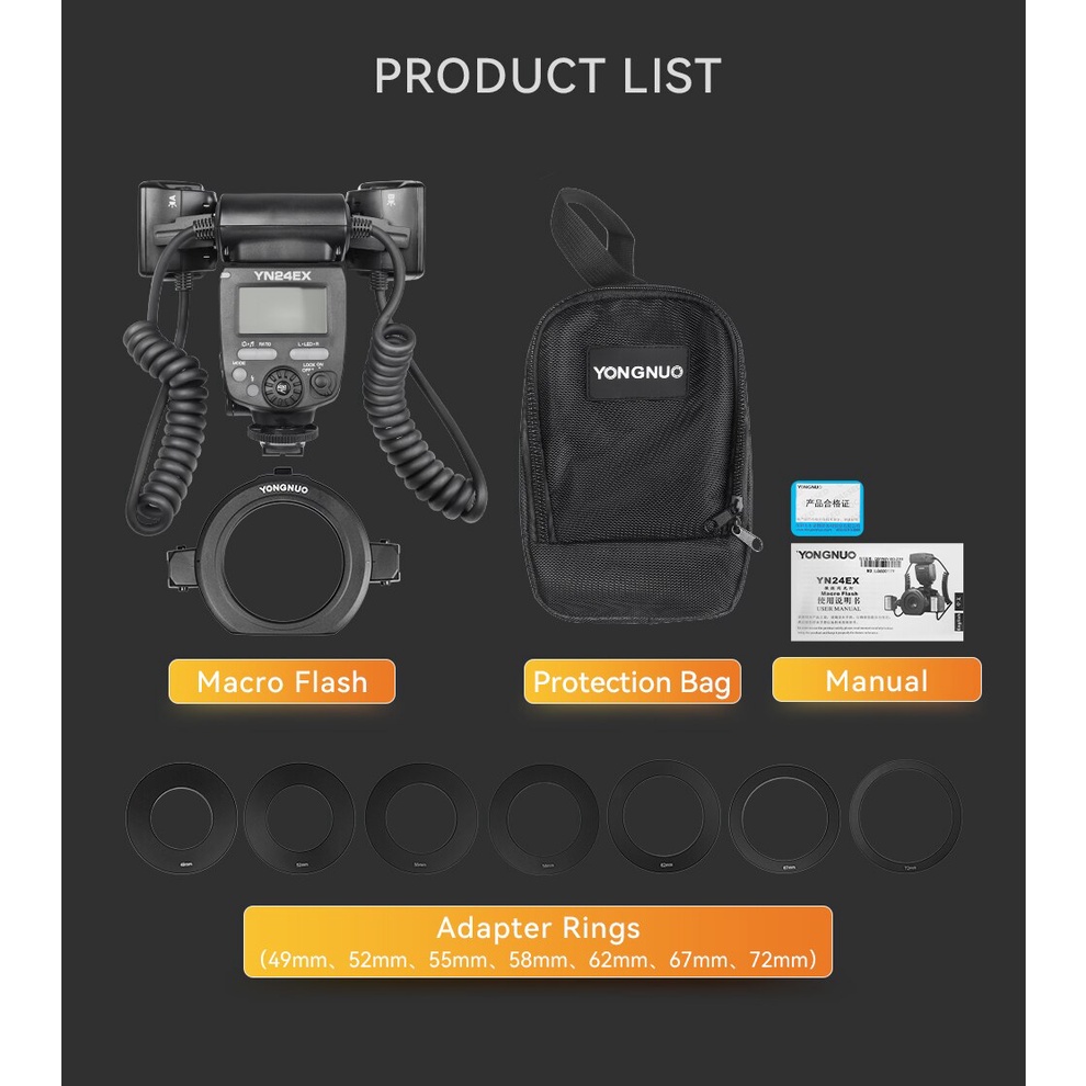 Yongnuo YN24EX TTL Macro Ring LED Flash Head Adapter w/ Auto Save Setting for Canon EOS & Sony DLSR