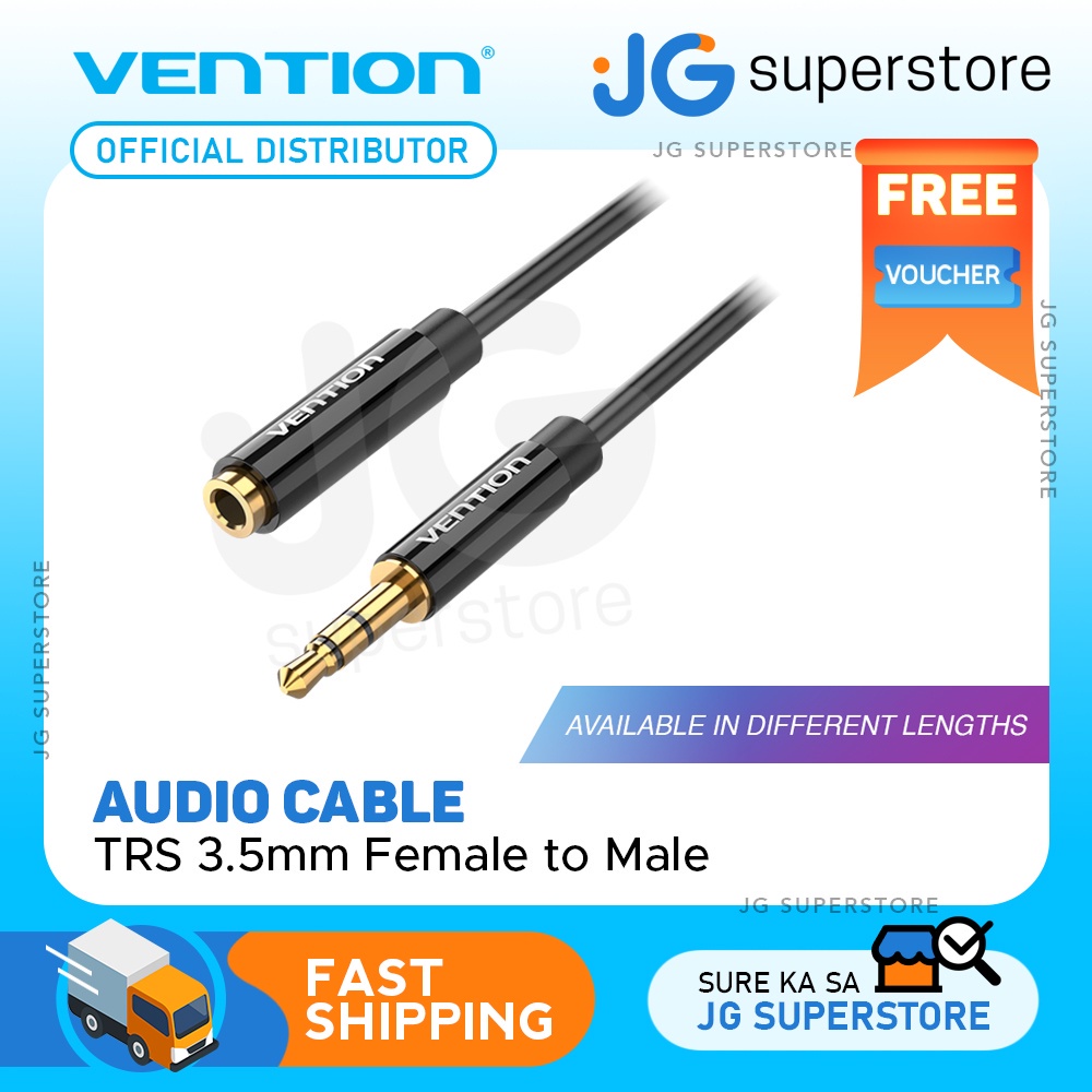 Vention TRS 3.5mm Female to TRS 3.5mm Male Gold Plated (BBZ) Audio Cable (0.5M, 1M, 1.5M, and 2M)
