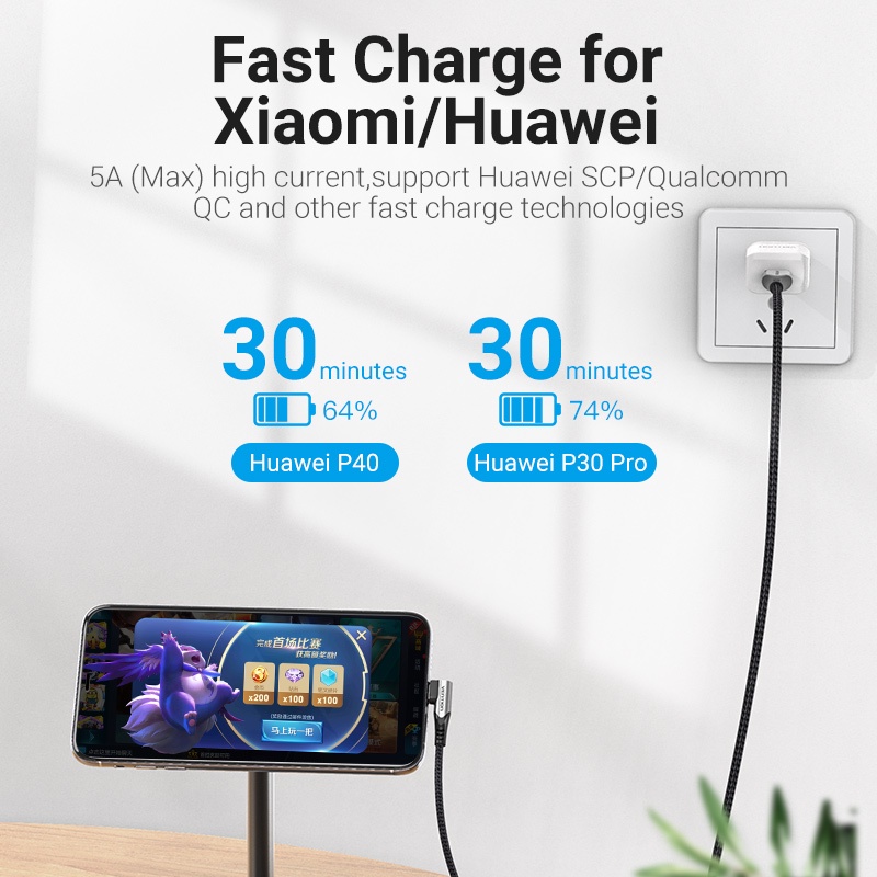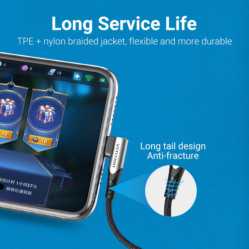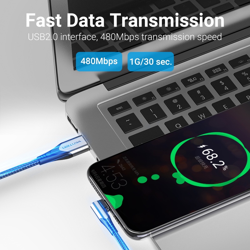 Vention USB 2.0 to 90 Degree Type C Male 5A Fast Charging Cable | COGH | (Lengths Available)
