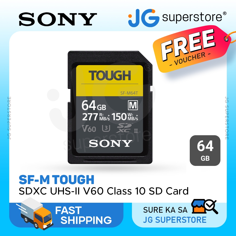 Sony 64GB / 128GB SF-M TOUGH SDXC UHS-II V60 Class SD Card 277 MB/s Read, 150MB/s Write Speed