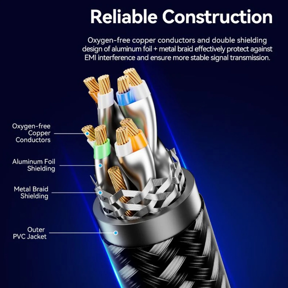 Vention Cat8 SFTP Cotton Braided Gaming Ethernet Patch Cable with 40Gbps High-Speed Transmission