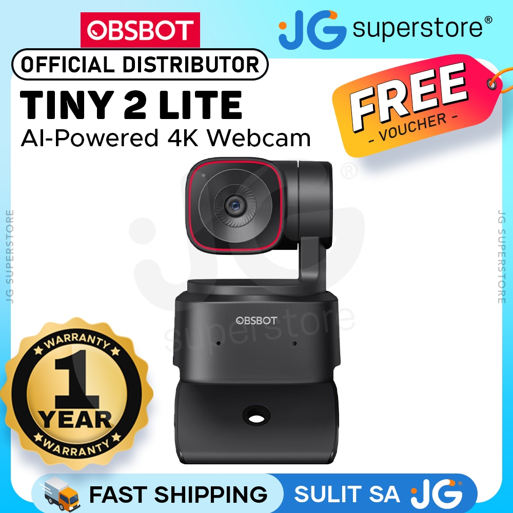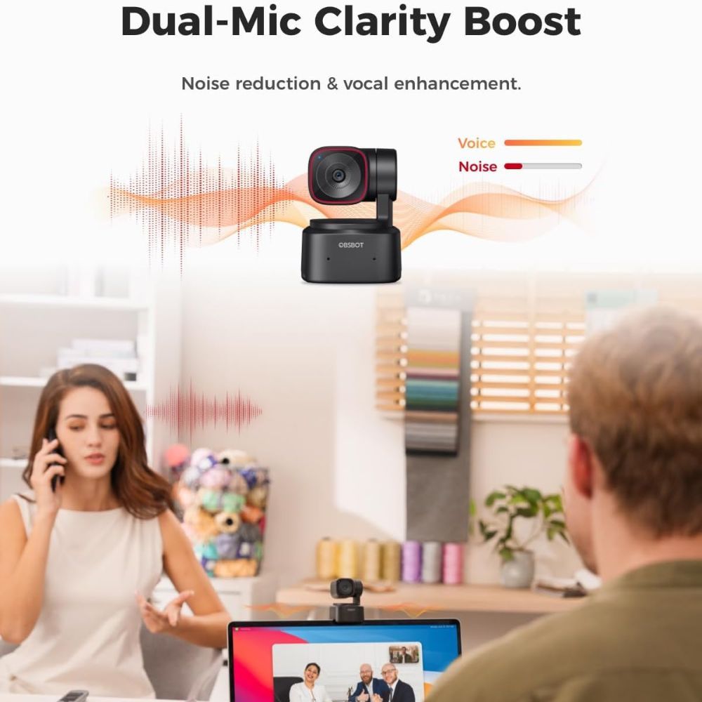 OBSBOT Tiny 2 Lite AI-Powered PTZ 4K Webcam with Subject Tracking, Auto Zoom, and Noise Cancellation