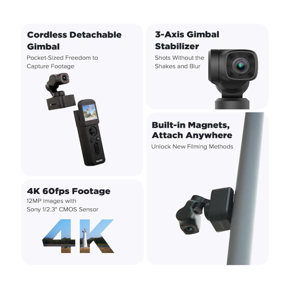 FeiyuTech Pocket 3 Kit Cordless Detachable 3-Axis Stabilizer Gimbal Camera 4K UHD 130° FOV Footage