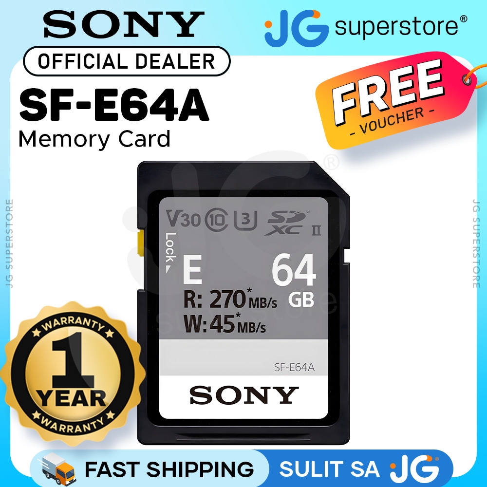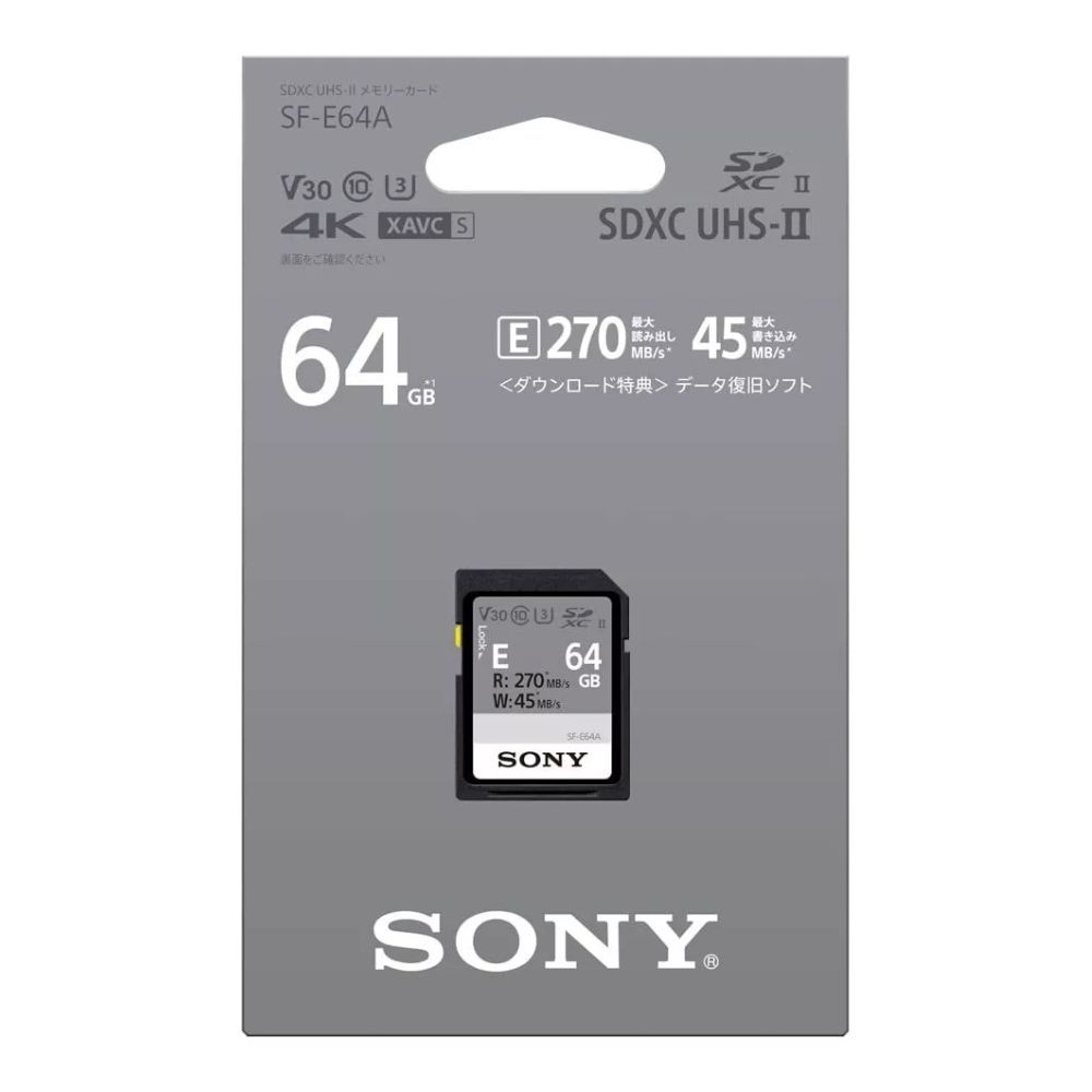 Sony SF-E64A 64GB UHS-II SDXC 4K V30 U3 Memory Card IP57 Max 270MB/S Read / 45MB/s Write Speeds