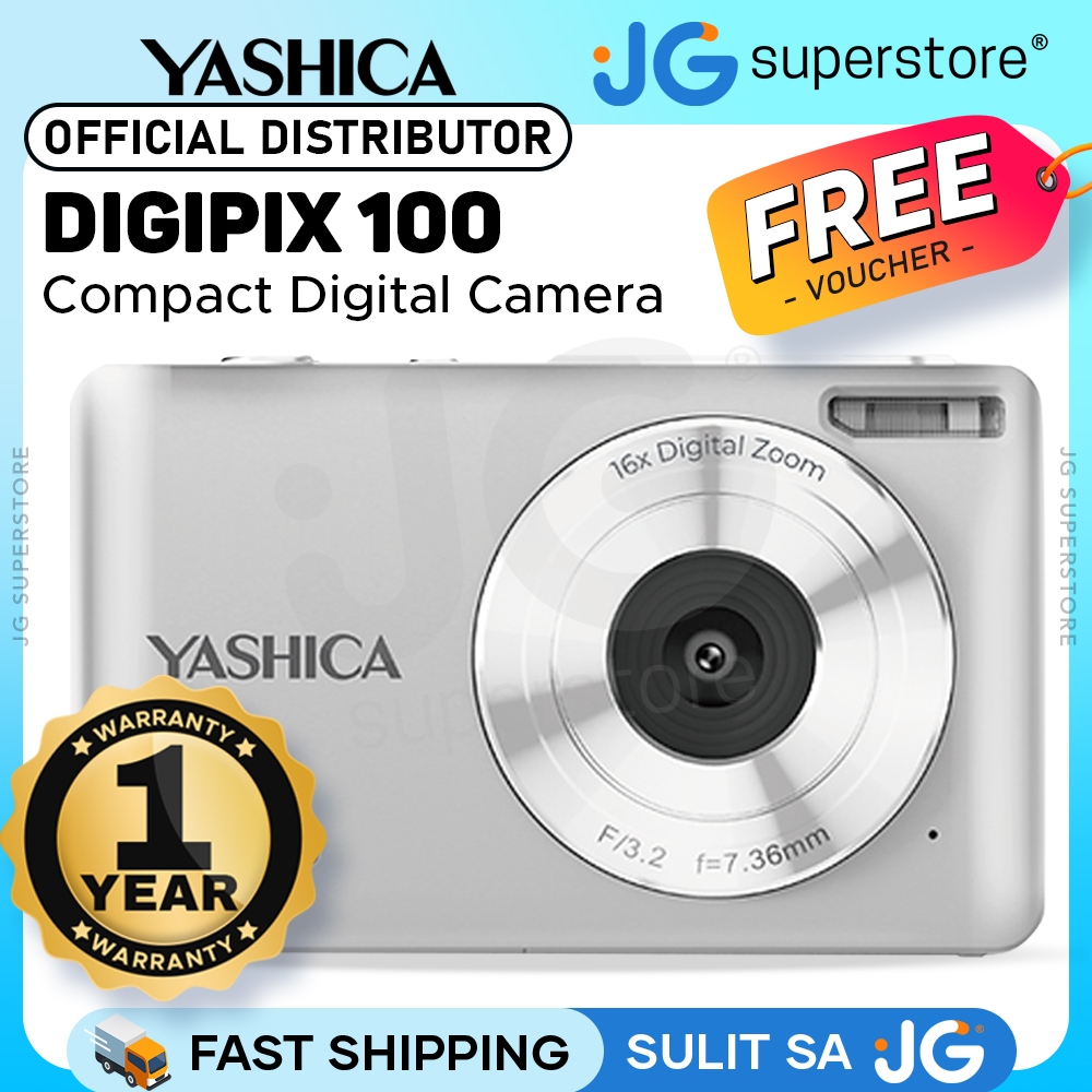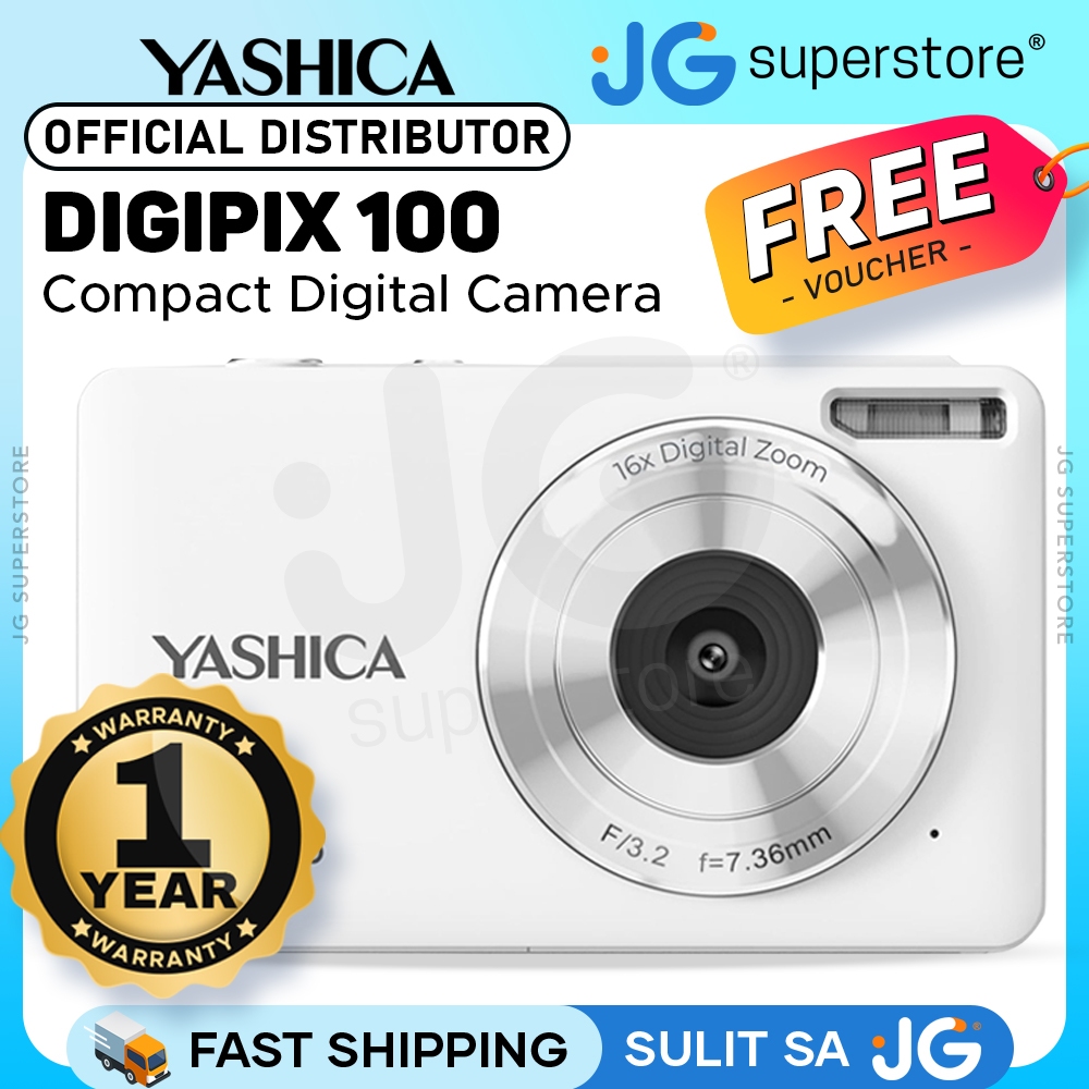 YASHICA DigiPix 100 Compact Digital Camera 44MP F/3.2 36mm 1080p Video Point & Shoot | Silver, White