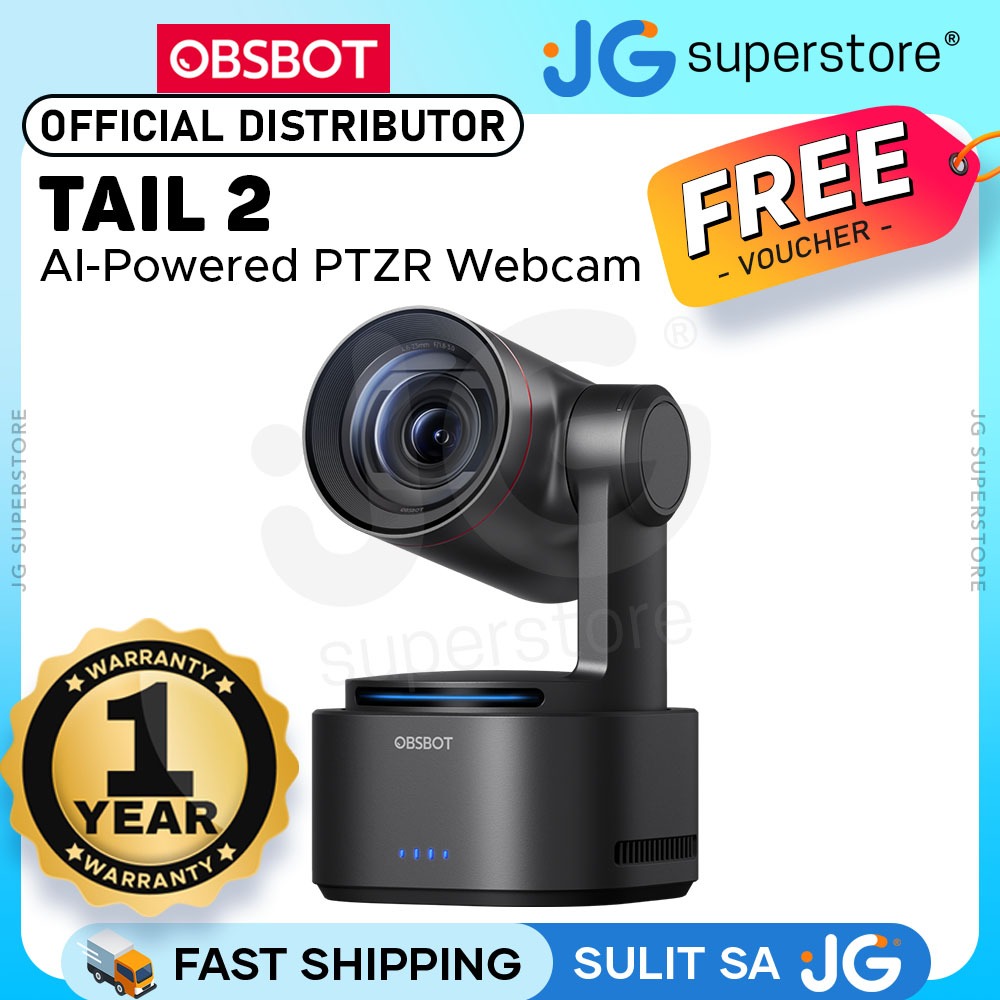 OBSBOT Tail 2 AI-Powered 4K PTZR Streaming Camera with Intelligent Auto Tracking and Up to 12x Zoom