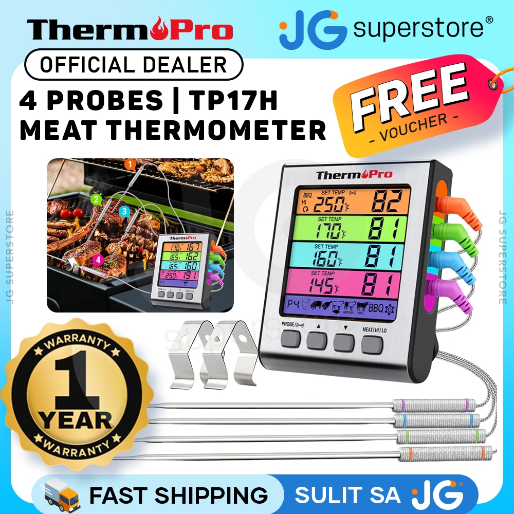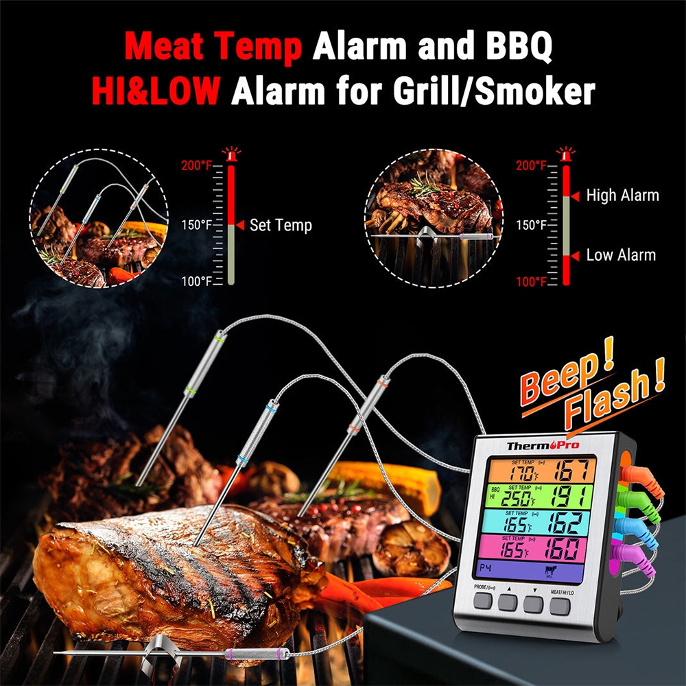 ThermoPro TP17H Digital Meat Thermometer with 4 Color-Coded Probes & Large Multi-Color Touch Backlit