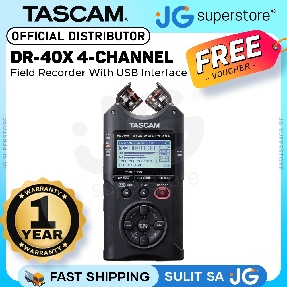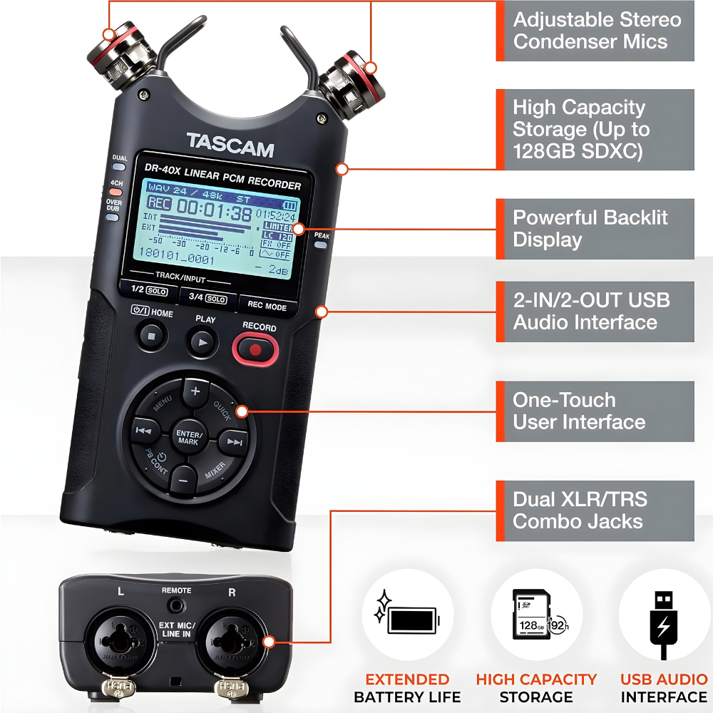 TASCAM DR-40X 4-Channel / 4-Track Portable Audio Recorder & USB Interface w/ Adjustable A/B–X/Y Mics