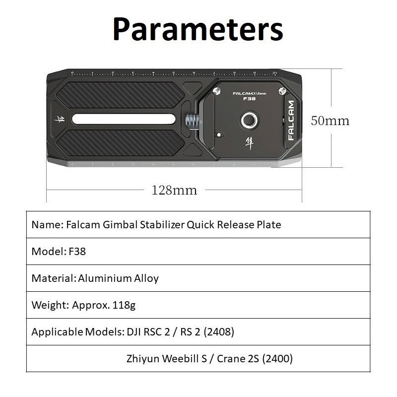 Falcam by Ulanzi F38 Quick Release Base Mount Plate System for DJI RS2/ RSC2 Gimbal Stabilizer, 2408