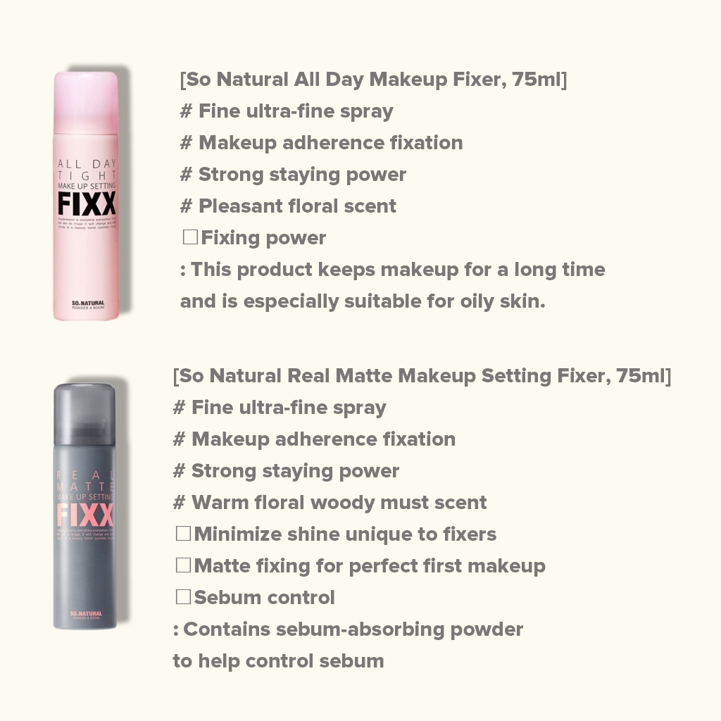So Natural NO GAS TYPE All Day Makeup Fixer 75ml / Wasabi Pore Focus Ampoule 80ml / TOPKOREA Shipping from korea
