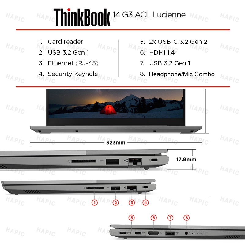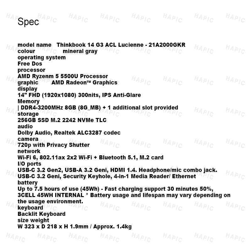 Lenovo laptop ThinkBook 14 G3 ACL Lucienne-21A2000GKR *Windows NOT included* **Gift Additional 8Ram**