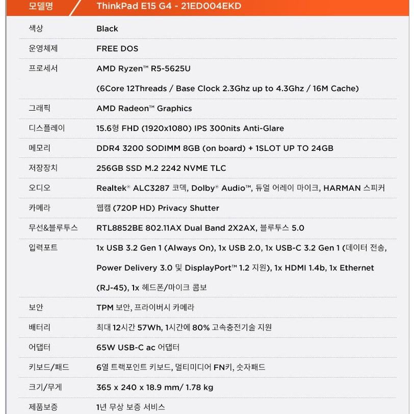 Lenovo ThinkPad E15 G4 Barcelo 21ED004EKD Laptop 39.6CM, 8BG,256GB *Windows NOT included*
