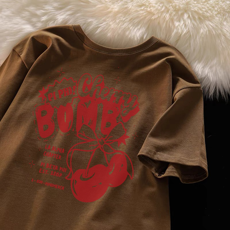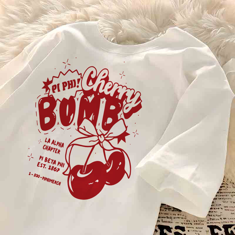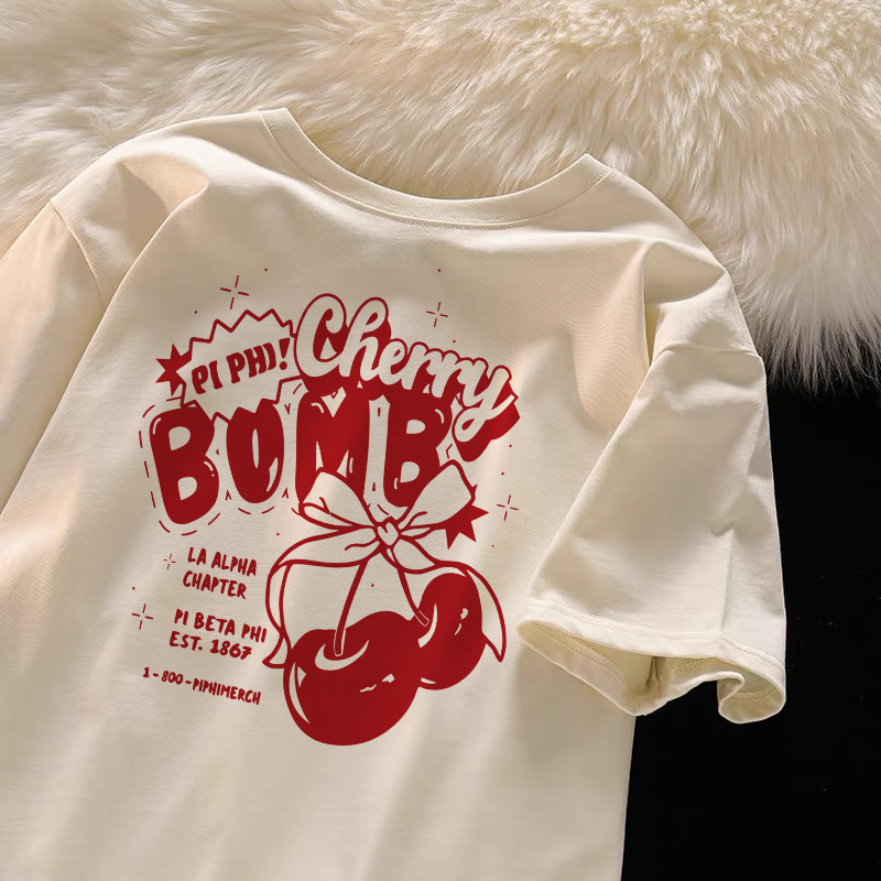 Korean style oversized round neck Cherry Bomb trendy cherry print cotton T-shirt for woman