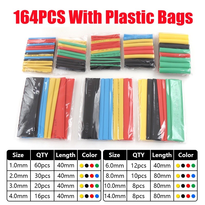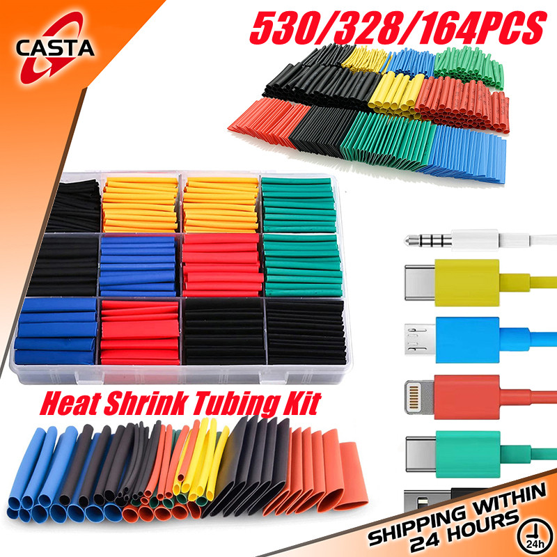 530/328/164PCS Heat Shrink Tubing Insulation Shrinkable Tubes Assortment Electronic Polyolefin Wire